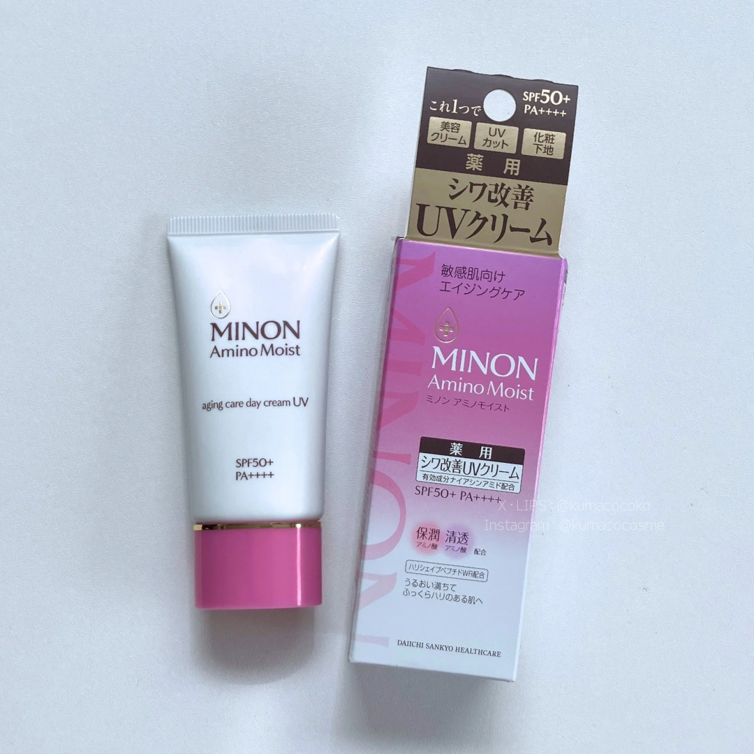 ⚪️MINON(ミノン)アミノモイストエイジングケアデイクリームUV【医薬部外品】敏感肌でも使いやすいミノンのUVクリーム💜これ1本でUVカット・化粧下地・美容クリームの3役をこなす万能アイテム✨こっくりしたテクスチャーだけど、なめらかに伸び...