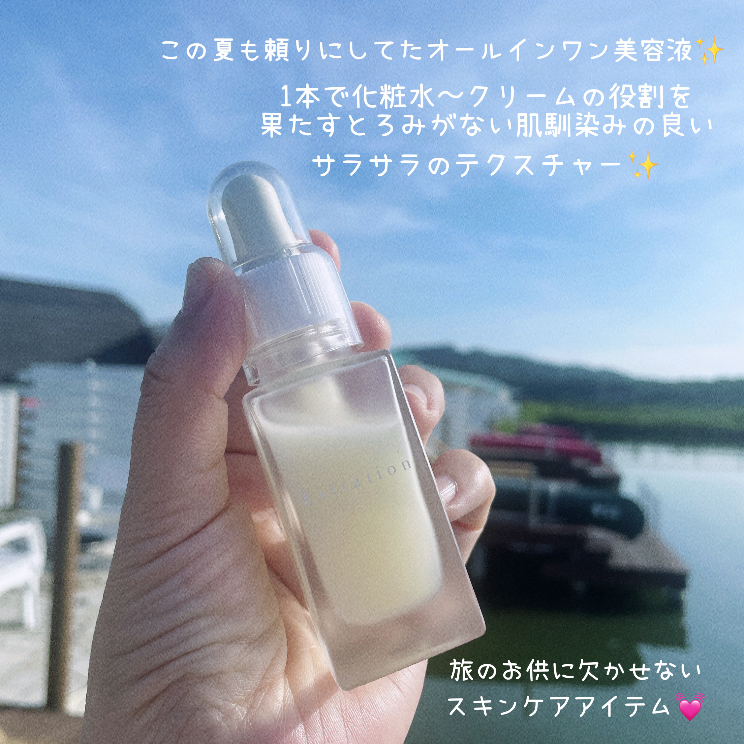 Estiation-エスティエイション-『オールインワン美容液シリーズA』をお試しさせて頂きました😊ガラスボトルの洗練されたデザインが印象的で、置いておくだけでも気分が上がるアイテム🤍洗顔後、これ1本でスキンケアが完了するシンプルケアタイプ❣...