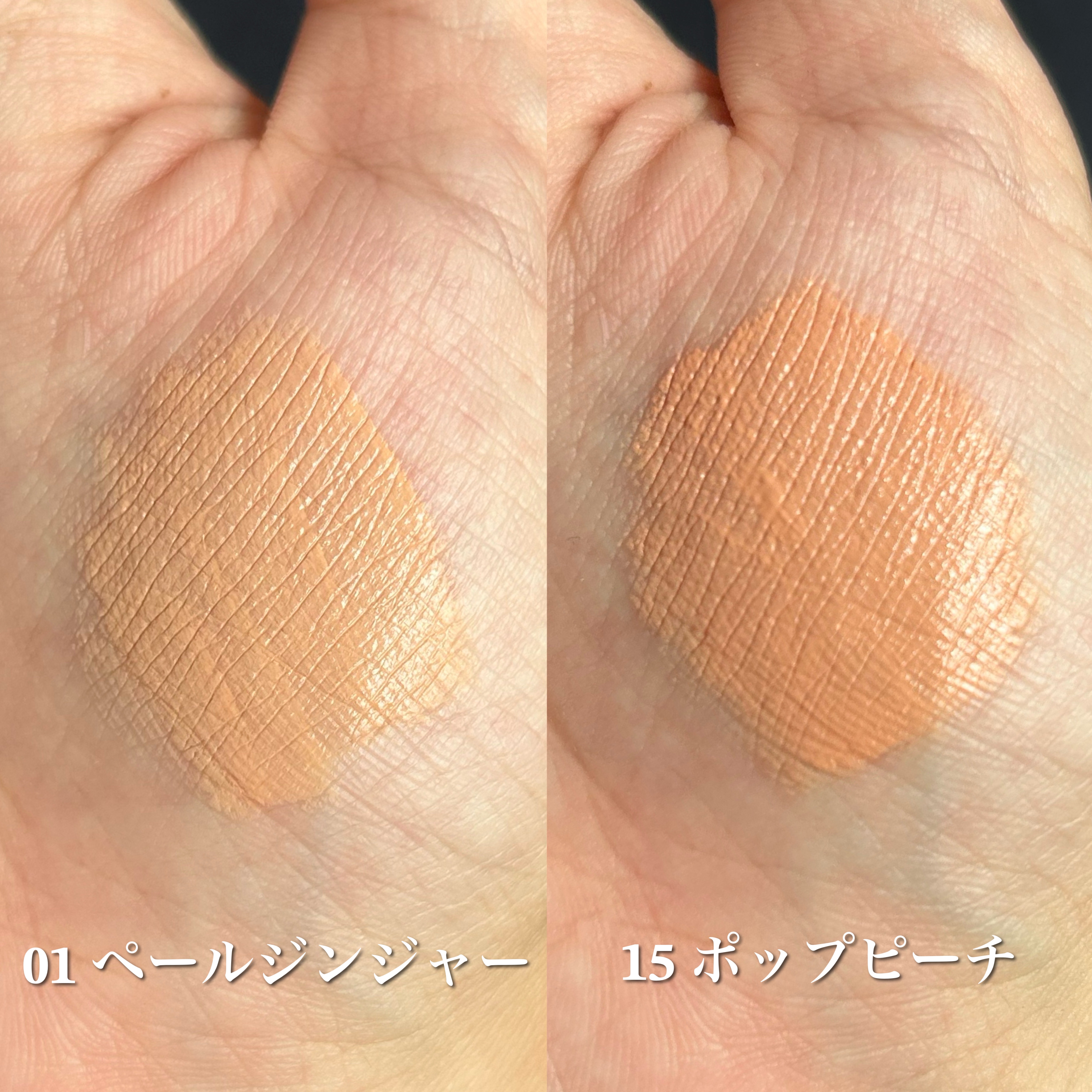 美容液成分約90%配合で、オレンジフラワーの甘くて爽やかな香りがふわっとするみずみずしい質感のファンデーション。 下地なしでもムラなく綺麗にフィットし、色ムラや毛穴をふんわりとカバーしてくれます◎ 濃いシミや赤み、クマのカバーにはコンシーラーが必要かなと思います💡 2色展開で01はややピンク寄りのベージュですが、透け感があるのでイエローみのある肌でも問題なく使えました◎ 長時間の使用でも乾燥知らずで、肌への負担も少ないです✨ 素肌感がある仕上がりなので崩れも目立ちにくいですが…下地なしだと若干毛穴部分に白く溜まったり、赤みが浮いてきたりしたのでお直しは必要かなと思います🙂 素肌感ある仕上がりでもより美しく、またしっかりキープするためには下地やパウダー、コンシーラーでのコントロールが必要ですが…1個でも済ませられて、肌も疲れにくいのは非常に魅力的なアイテムです💕 あまり作り込みたくない休日などに使うと良さそうだなと思いました😌