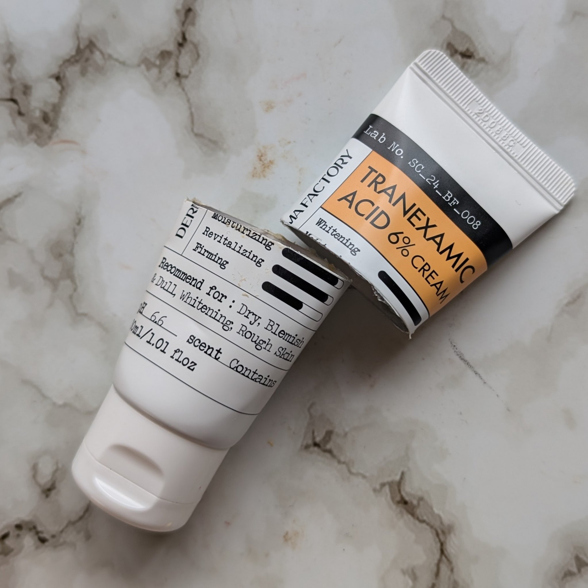 🍊DERMAFACTORYトラネキサム酸6%クリーム美白・シミそばかす・くすみケアに✨肌の上でも心地よく伸ばしやすいテクスチャーのクリームすこし柑橘系の香りがしますクリーム自体は軽くて、ベタつきもないのでこれからの季節も使用できそうです刺激を...