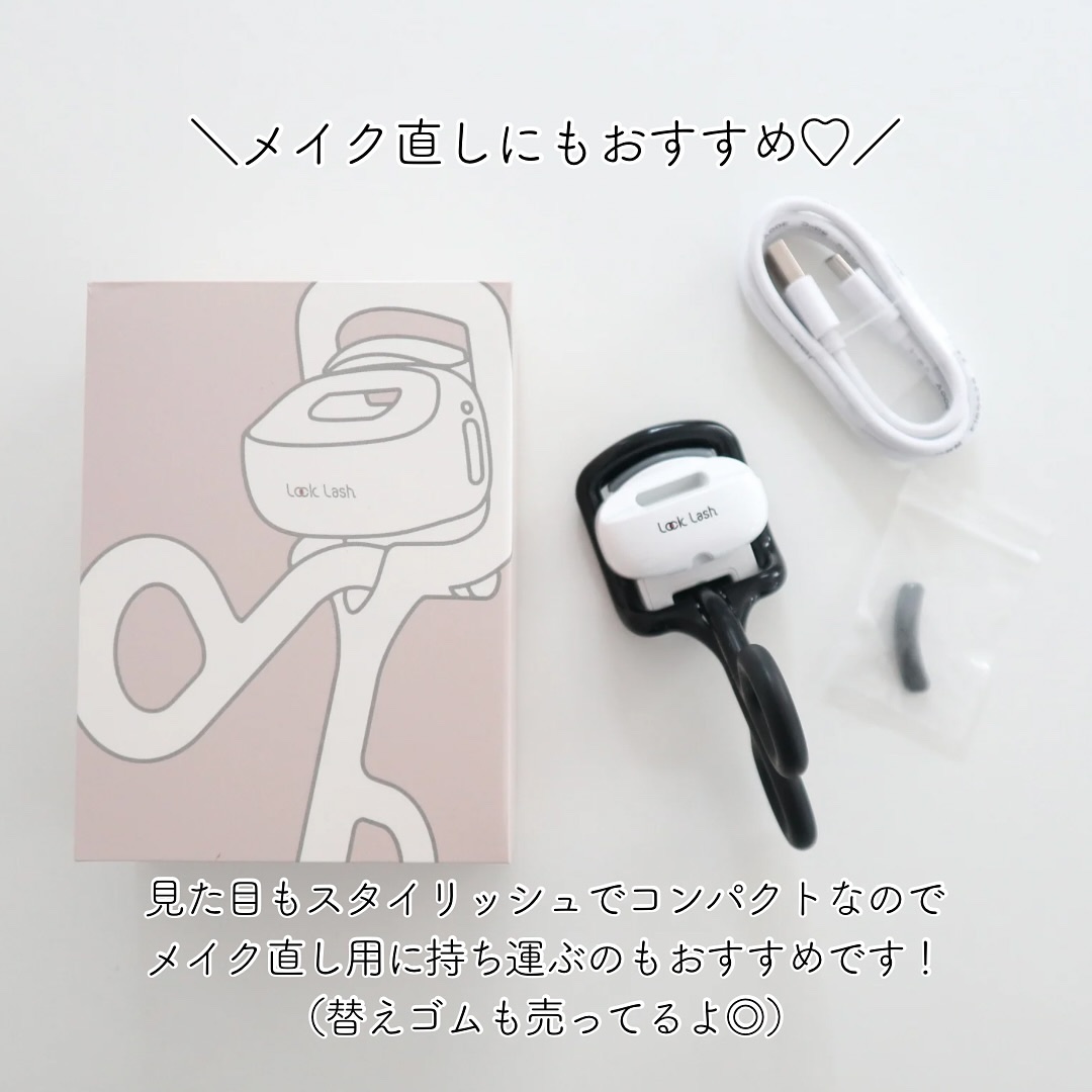 約5秒で温度が上がってすぐに使える! 加熱式アイラッシュカーラー 60℃の高温モードと45℃の低温モード。高温モードでまつげを上向きカール、低温モードでしっかりロック。 ゴムは変えられるからコスパもよし🫶🏻 はじめに替えゴム1個はついて別売りでも3個入り¥500で購入できます🤍