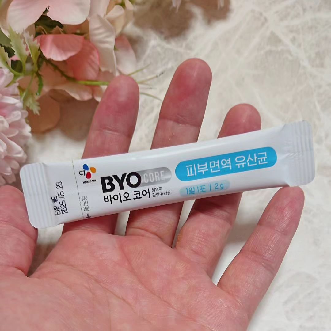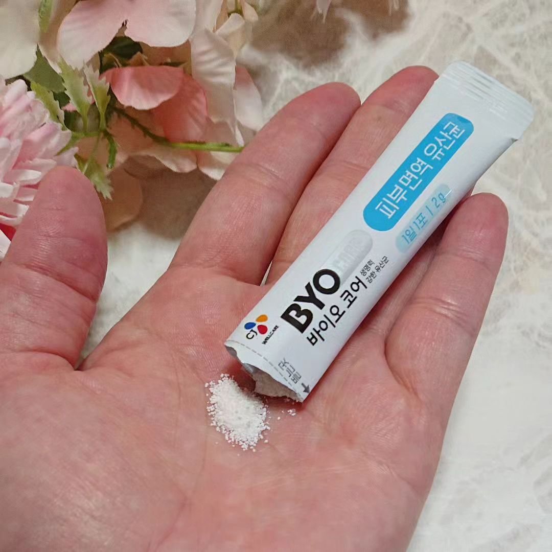 プレミアム乳酸菌という、韓国で初めて認められたCJLP133菌株で製造した果物&野菜由来の乳酸菌製品のようです🫰 腸と肌を同時に管理したい方におすすめとのことです🤔 サラッとした粉ですぐ水にとけます香りもほぼ感じないし、クセのない感じで飲みやすいです!