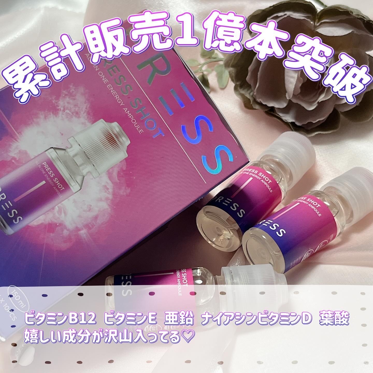 - ・PRESSしてSHAKEするだけ!魔法のようなピンクビタミンに! ・飲むインナービューティー ・飲むピンクビタミン ・粉末にはビタミン B12/D/E、葉酸、ナイアシン、亜鉛が含まれています ・吸収力を重視した液状タイプでの商品設計 ・特許取得の特殊キャップにビタミンを真空密封 ・ビタミンB群を集中配合 ・ビタミンB12は1日の基準値に対し16,667%配合 ・液体は11種類のアミノ酸で吸収しやすい設計 ・飲む瞬間にキャップを押す⇒ビタミンが液体に混ざりフレッシュなビタミンドリンクが完成! 【注意事項】 ・高カルシウム血症がある場合、または医薬品を服用されている方は専門家に相談してください。 ・体に異変を感じた場合は使用を中止し、速やかに専門家に相談してください。 ●本品は、多量摂取により疾病が治癒したり、より健康が増進するものではありません。 亜鉛の摂り過ぎは、銅の吸収を阻害するおそれがありますので、過剰摂取にならないよう注意してください。一日の摂取目安量を守ってください。乳幼児・小児は本品の摂取を避けてください。 ●本品は、特定保健用食品と異なり、消費者庁長官による個別審査を受けたものではありません。 ●食生活は、主食、主菜、副菜を基本に、食事のバランスを。 ●本品製造工場では卵、小麦、そば、落花生、えび、かに、くるみを含む製品を製造しています。 ●摂取目安量:1日当たり1本を目安にお飲みください。 ●摂取の方法:キャップを押すと粉末が落ちます。上下に振り、混ぜてからお飲みください。※粉末が固まる場合がございますが、品質には問題ありません。よく振ってからお飲みください。 2024年12月中旬より全国のウエルシア薬局とロフト※にて先行販売をいたします。 ※一部お取り扱いがない店舗がございます。