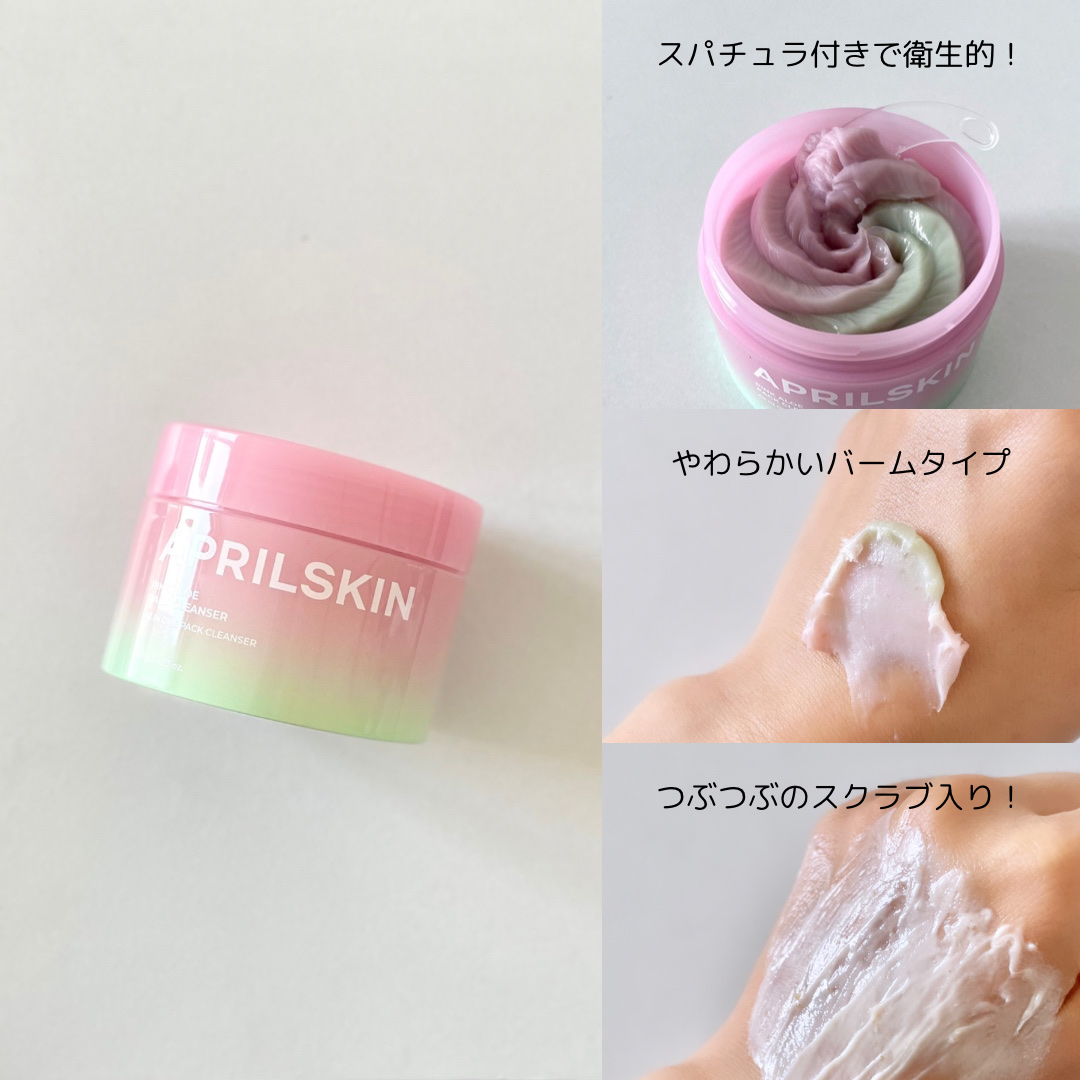 ピンクとアロエ色、またホイップしたような見た目がとっても可愛いです。 テクスチャーはふわふわしっとりなめらか。なめらかに伸びて、優しくなじませることが出来ます。 肌が食べる新感覚メレンゲクレンザー! やわらかい濃度で埋め尽くし、毛穴の隙間まで完璧に皮脂・老廃物・黒ずみを吸着。 保湿成分と自然クーリンク成分で使用後の毛穴引き締めまで。