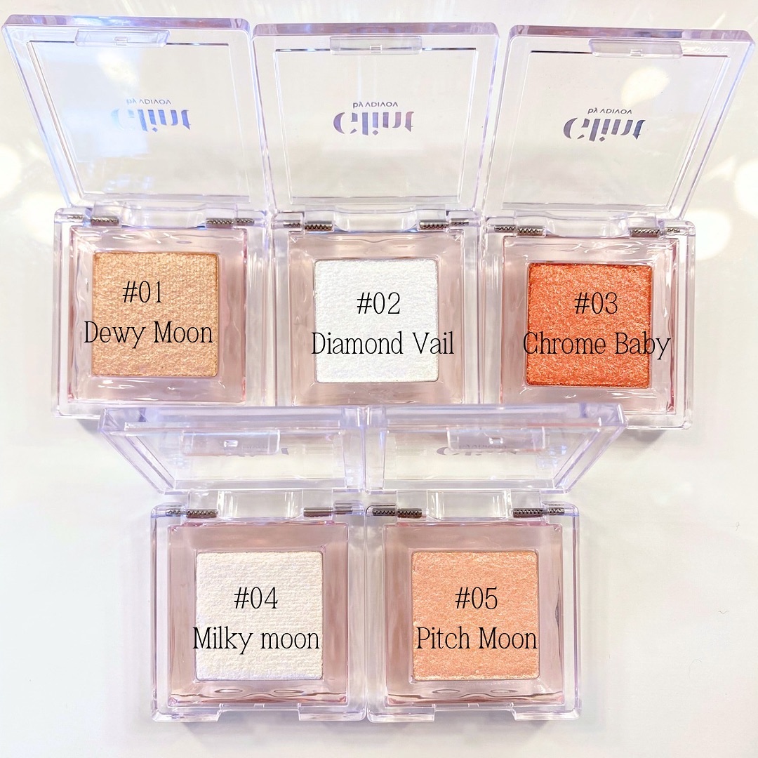 - <Dewy Moon> 合成フルオロフロゴパイト、酸化チタン、マイカ、(HDI/トリメチロールヘキシルラクトン) クロスポリマー、シリカ、リン酸Ca、ジメチコン、酸化鉄、グリセリン、トリエトキシカプリリルシラン、パルミチン酸イソプロピル、ケイ酸(AL/Mg)、ペンチレングリコール、ミリスチン酸Mg、ポリソルベート20、ステアロイルオキシステアリン酸オクチルドデシル、(アクリルアミド/アクリロイルジメチルタウリンNa/アクリル酸)コポリマー、デヒドロ酢酸Na、オリーブ油脂肪酸ソルビタン、ステアリン酸ソルビタン、イソヘキサデカン、フェノキシエタノール、ソルビン酸K、エチルヘキシルグリセリン、ポリソルベート80、オレイン酸ソルビタン、トコフェロール <Chrome Baby> マイカ、ホウケイ酸(Ca/Al)、シリカ、酸化チタン、オクチルドデカノール、ジメチコン、(ジフェニルジメチコン/ビニルジフェニルジメチコン/シルセスキオキサン) クロスポリマー、酸化鉄、グリセリン、ミリスチン酸Mg、(HDI/トリメチロールヘキシルラクトン)クロスポリマパルミチン酸イソプロピル、グンジョウ、ペンチレングリコール、ケイ酸(AL/Mg)、ポリソルベート20、赤226、ステアロイルオキシステアリン酸オクチルドデシル、酸化スズ、(アクリルアミド/アクリロイルジメチルタウリンNa/アクリル酸)コポリマー、トリエトキシカプリリルシラン、オリーブ油脂肪酸ソルビタン、ステアリン酸ソルビタン、イソヘキサデカン、フェノキシエタノエール、デヒドロ酢酸Na、ソルビン酸K、エチルヘキシルグリセリン、カオリン、ポリソルベート80オレイン酸ソルビタン、トコフェロール <Milky Moon> マイカ、酸化チタン、(HDI/トリメチロールヘキシルラクトン) クロスポリマー、ジメチコン、合成フルオロフロゴパイト、シリカ、エチルヘキサン酸セチル、グリセリン、パルミチン酸イソプロピル、ペンチレングリコール、ケイ酸(AL/Mg)、トリエトキシカプリリルシラン、ポリメチルシルセスキオキサン、ミリスチン酸Mg、ポリソルベート20、ステアロイルオキシステアリン酸オクチルドデシル、(アクリルアミド/アクリロイルジメチルタウリンNa/アクリル酸)コポリマー、オリーブ油脂肪酸ソルビタン、ステアリン酸ソルビタン、デヒドロ酢酸Na、イソヘキサデカン、フェノキシエタノール、ソルビン酸K、エチルヘキシルグリセ リン、酸化スズ、ポリソルベート80、オレイン酸ソルビタン、トコフェロール