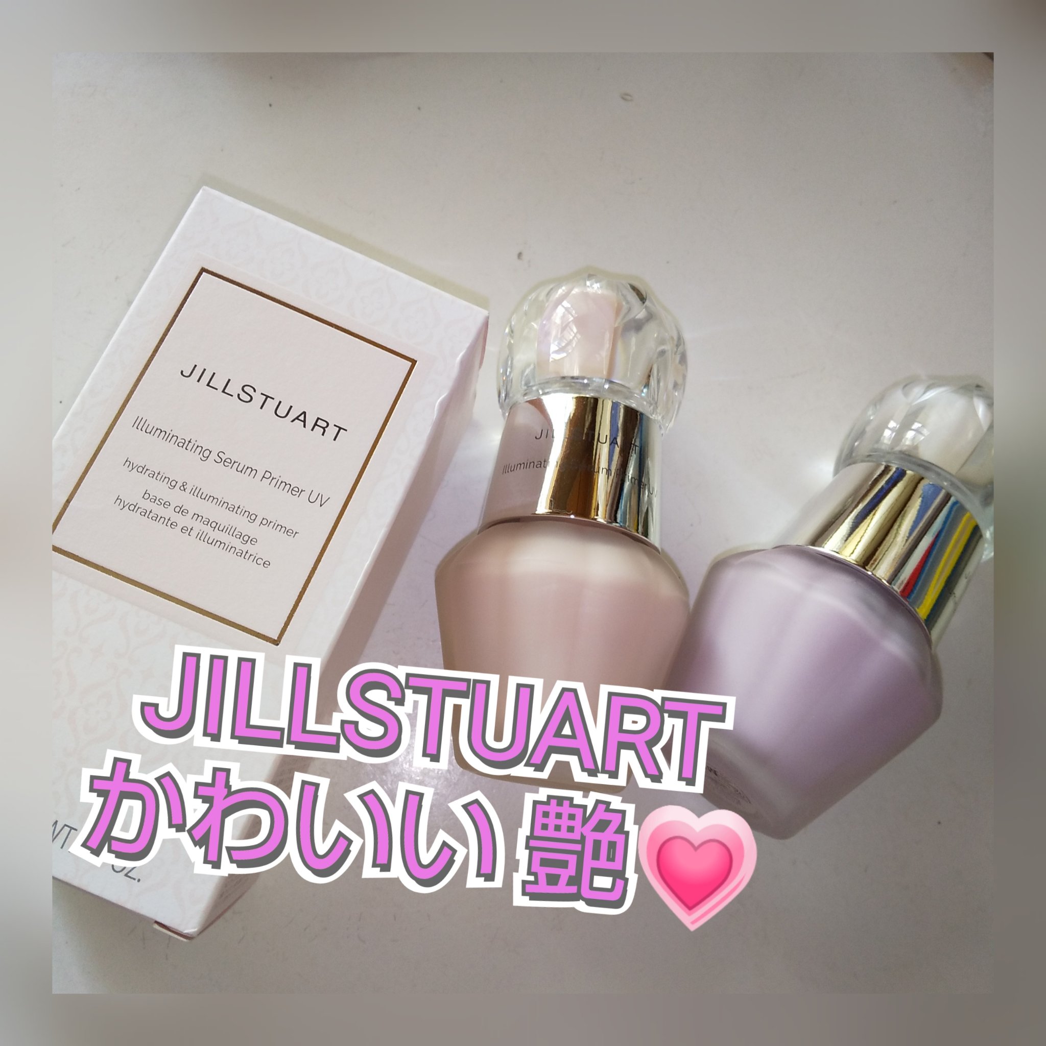 明日発売のジルスチュアート イルミネイティングジェム セラムプライマー 01 lavender gem きらめきもパール感もしっかりあってツヤっとしたベースが仕上がる! ピンク系は血色感もUPするから、仕込みチーク的に重ねて使ったりしても可愛かった!! SPF40/PA+++で、UVカット効果も高く みずみずしく伸びがいいし、透明感のある仕上がりに!!!