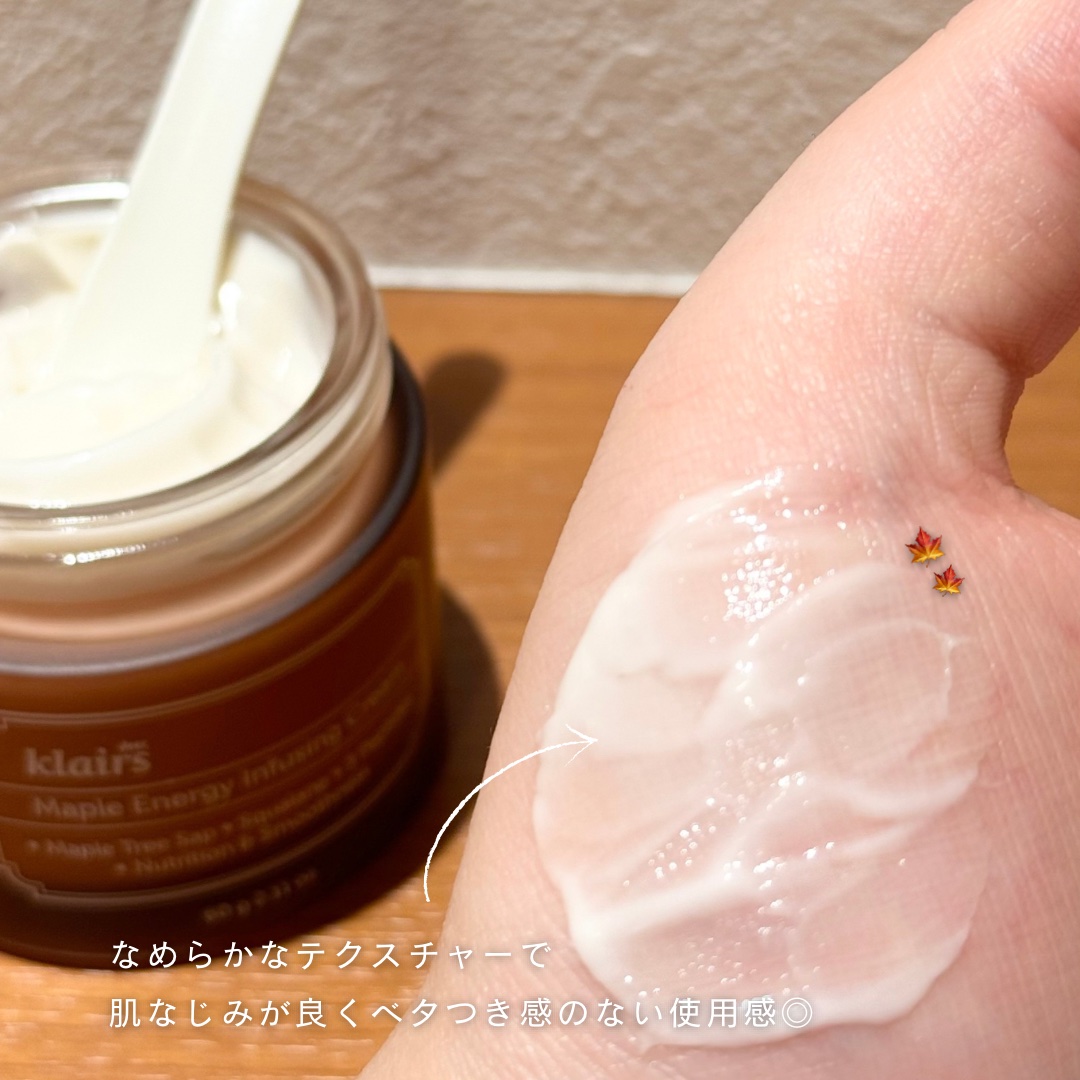 メープルの樹液が配合♡ この樹液は、氷点下5度から20度に迫るカナダの厳しい冬を乗り越えるために蓄えている水分で1年にたった一度しか採取できないそぅ‼️ 高い保湿力を感じることができちゃう♡ メープルエナジーインフュージングクリームは、外部からの刺激による水分バリアの改善はもちろん、シワ改善や肌弾力、リフティングにも効果的な3Dバリアクリーム♡ バターの様に柔らかい。 こっくりとしたテクスチャー。滑らかで肌にハリが♡