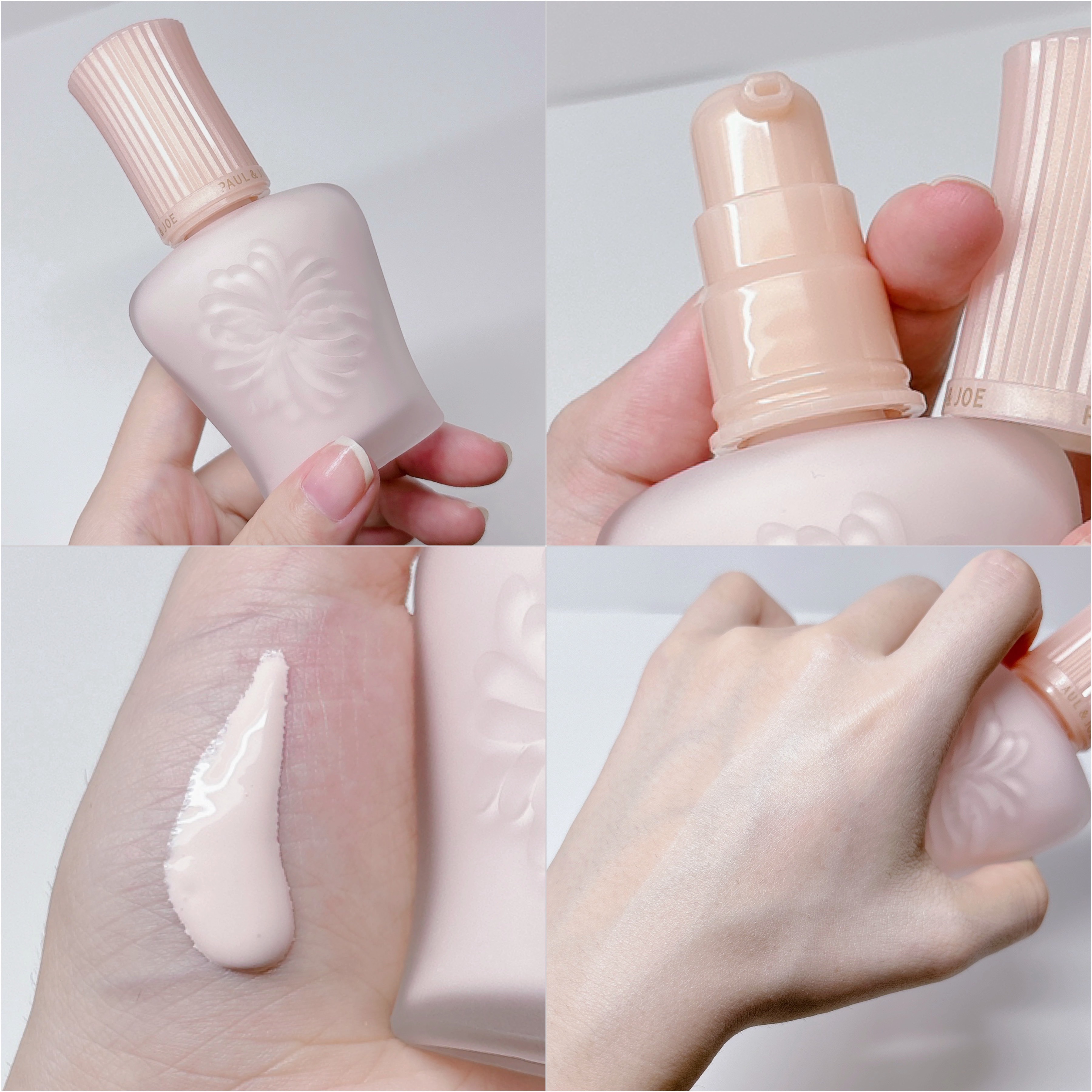 みずみずしく、サラッとしたテクスチャー。 すーっと化粧水感覚で伸びてくれて、密着してくれる🫶 さっと塗っただけでもツヤ肌を仕込めるけど、 重ねることで更にツヤ感が増す気がします。 内側から自然なパール感のツヤ肌になれるので、 ツヤ肌好きな人にはぜひおすすめしたいです〜✨️