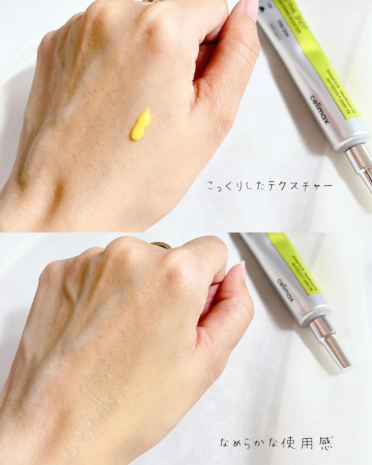 最高じゃない? こういうのテンション上がるし、大事に使おう!って思うよね🫶 シワや毛穴のケアに。 黄色いこってりとしたテクスチャー。先端が細いチューブなので使いやすい︎︎👍 こちらも黄色の みずみずしいテクスチャー。伸びがいい️⭕️ 少しチクチクしました😊