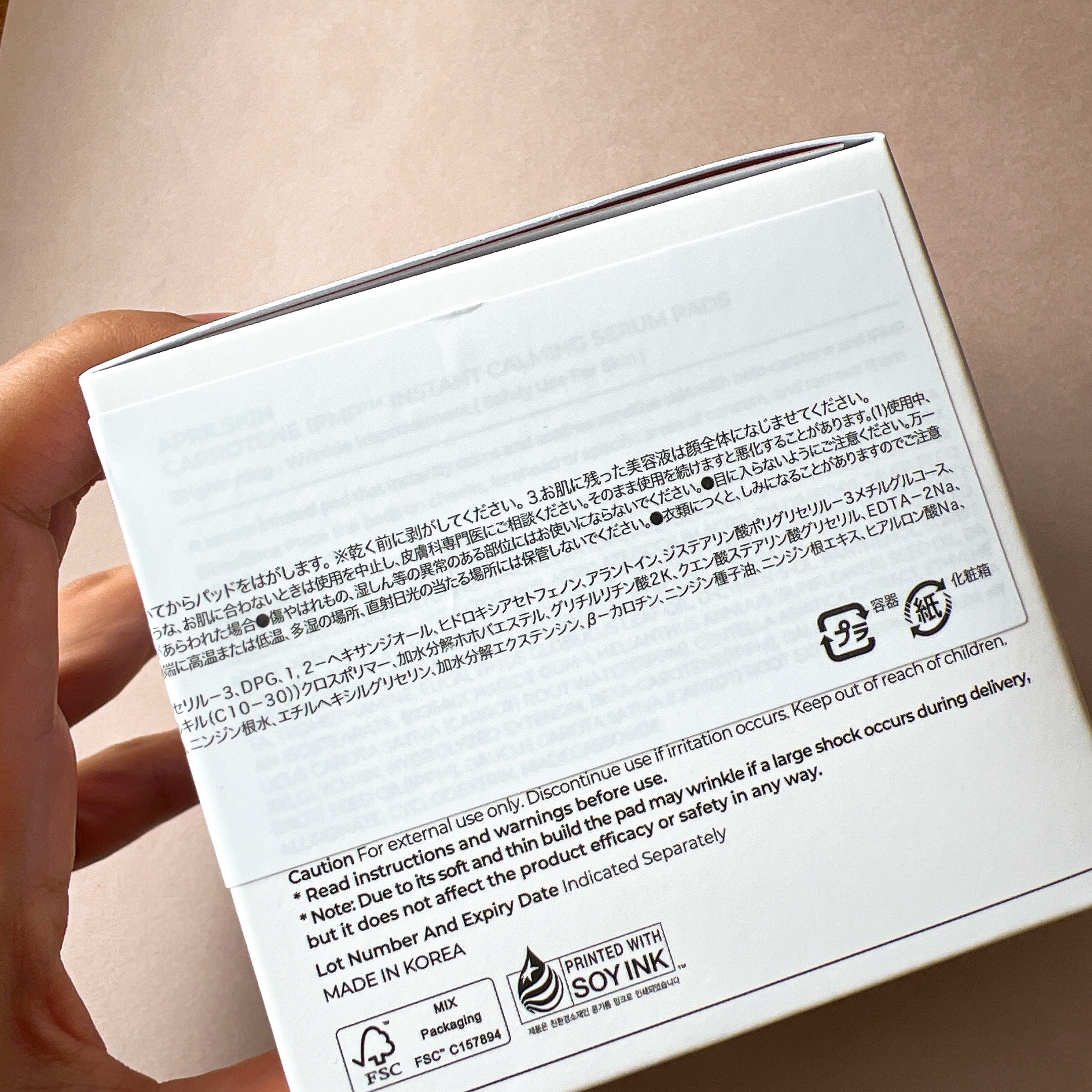 商品詳細情報APRILSKIN カロテンIPMP(TM) ブレミッシュカーミングセラムパッド