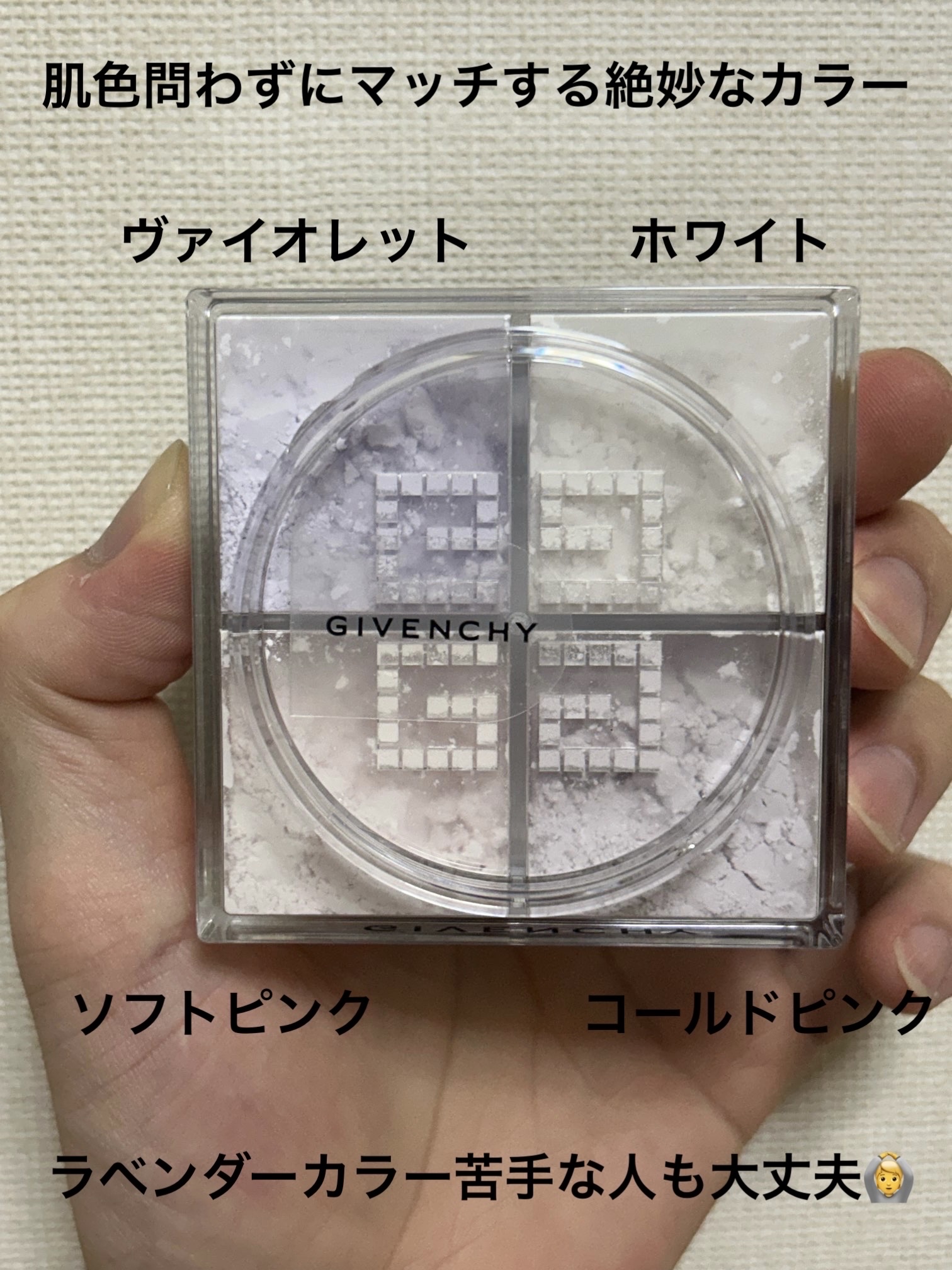 - “人の肌色は単色では表現できない”というブランドの創始者ユベール・ド・ジバンシィの考え方によって生まれた、世界初*の4色構成フェイスパウダー。 光とろける粉ツヤが、4色の光で肌悩みを洗い上げ、透明感が清らかさにまで極まった清光美肌へ。 超微粒子のパウダーがリアルな素肌美を演出し、立体感のあるツヤを実現。 自然界にある光の魔法、プリズムのように、澄んだ透明感で肌を包みます。 *ジバンシイ調べ - 1989年発売時