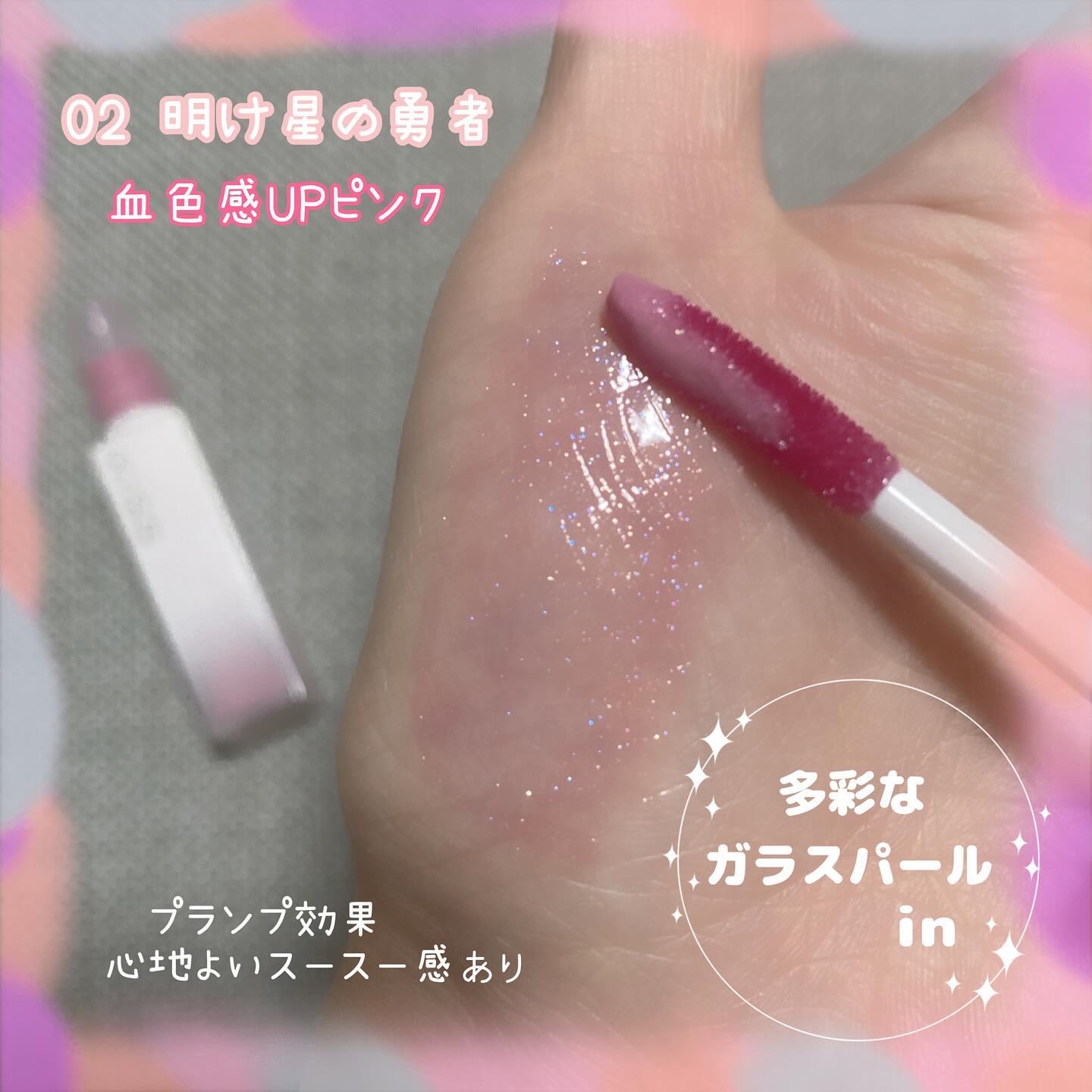 | 指で軽く触るとジェル膜を感じられますし、ツヤツヤぷるぷるのリップに仕上がります! | 詳細を見る | ||