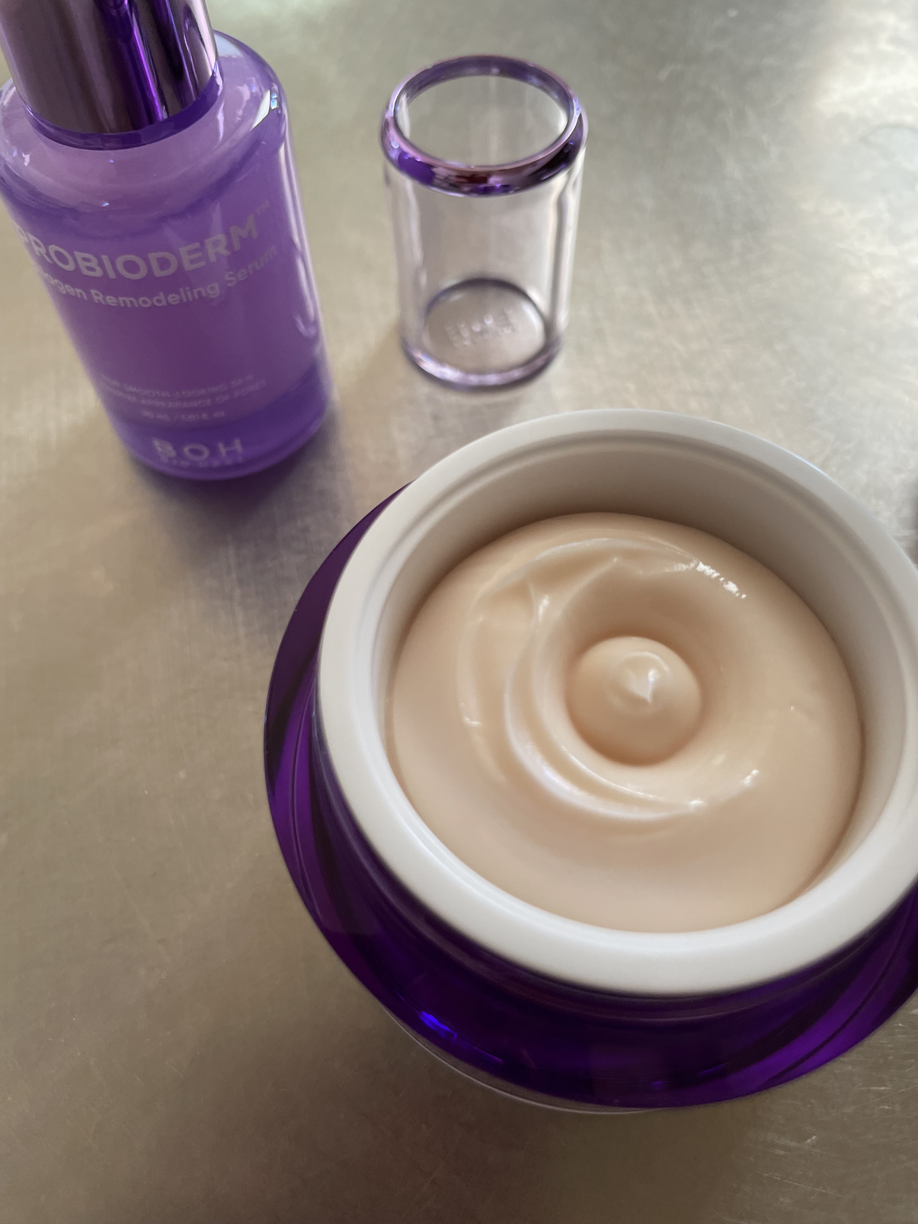 コックリとしたクリームですが塗った後はベタつき感が少なく、肌をしっとりさせてくれるクリームです。 お花のような香りがします🌸 夜これを塗った日の翌日は乾燥が気にならず、洗顔前でも肌がもちもちしていてびっくりしました🫢 こちらは①と違いクリームというよりジェルに違い質感のクリームです。 つぶつぶとした珍しい質感でさらっとしているので、朝の保湿にぴったりでした❗️
