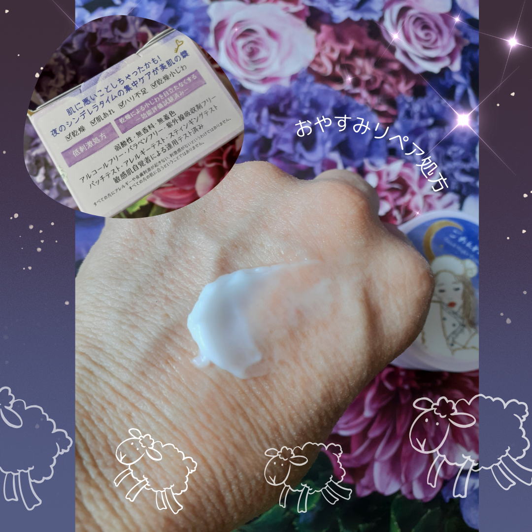 - 日中に負担をかけてしまった肌*を、寝ている間に集中ケアできる『おやすみリペアクリーム』 ①負担をかけた肌*も、寝ている間に集中ケア 摩擦感なく伸び広がり、ピタッと密着。夜の肌刺激(乾燥・摩擦)から守りながら、日中受けたダメージ*を集中ケアし、8時間熟睡したような肌へ導きます。 ②あれがちな肌にも使いやすい低刺激設計 弱酸性・無香料・無着色・アルコールフリー・パラベンフリー・紫外線吸収剤フリーの低刺激処方で、やさしい使い心地です。 *乾燥による
