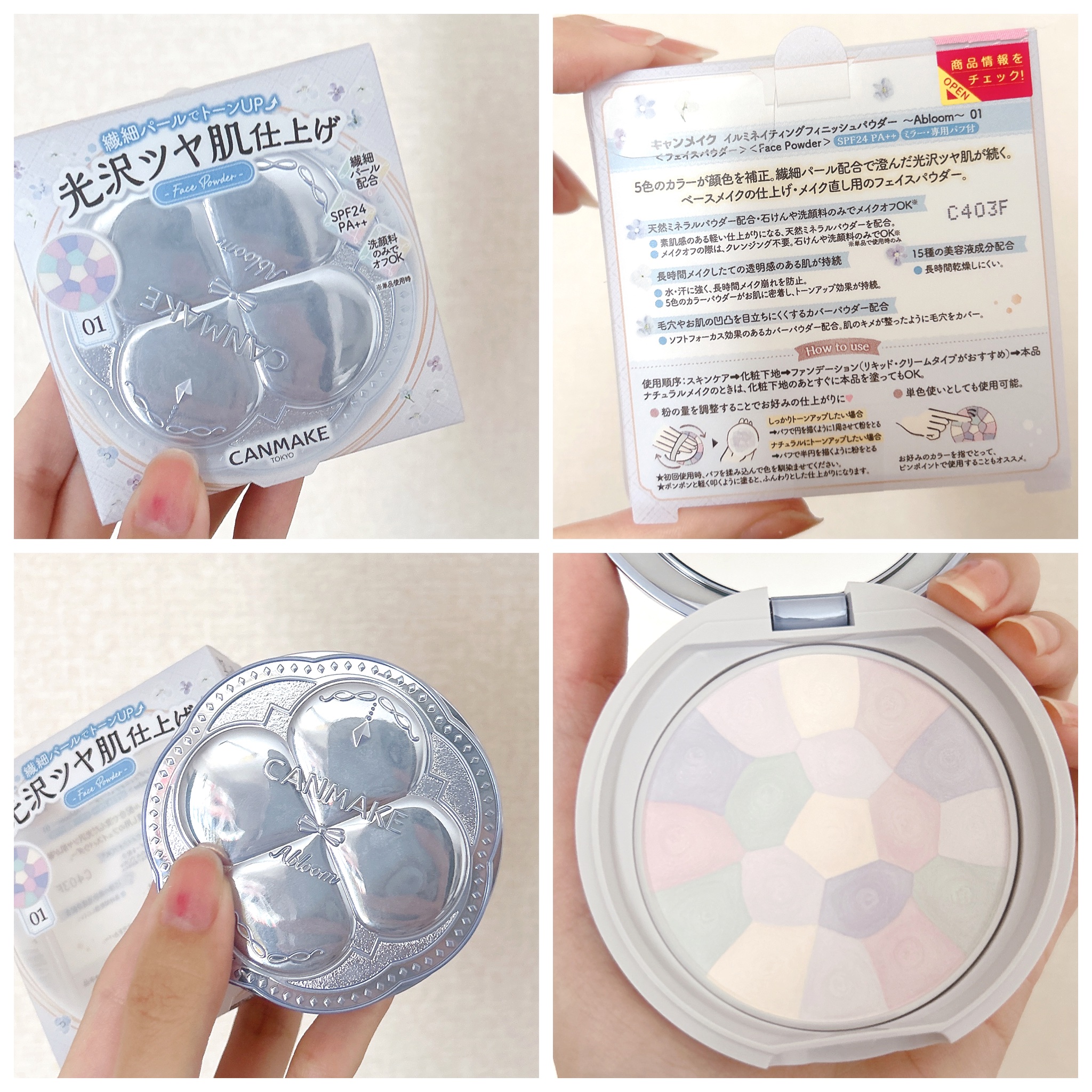 イルミネイティングフィニッシュパウダー~Abloom~は現在01ハイドレンジアガーデンのみの色展開。 このパウダーは、繊細なパールが配合されていて自然なツヤ感をあたえてくれます。 そしてパケもめっちゃかわいいのー!!何歳になってもこういうデザイン好きよ🥰ときめく🥰