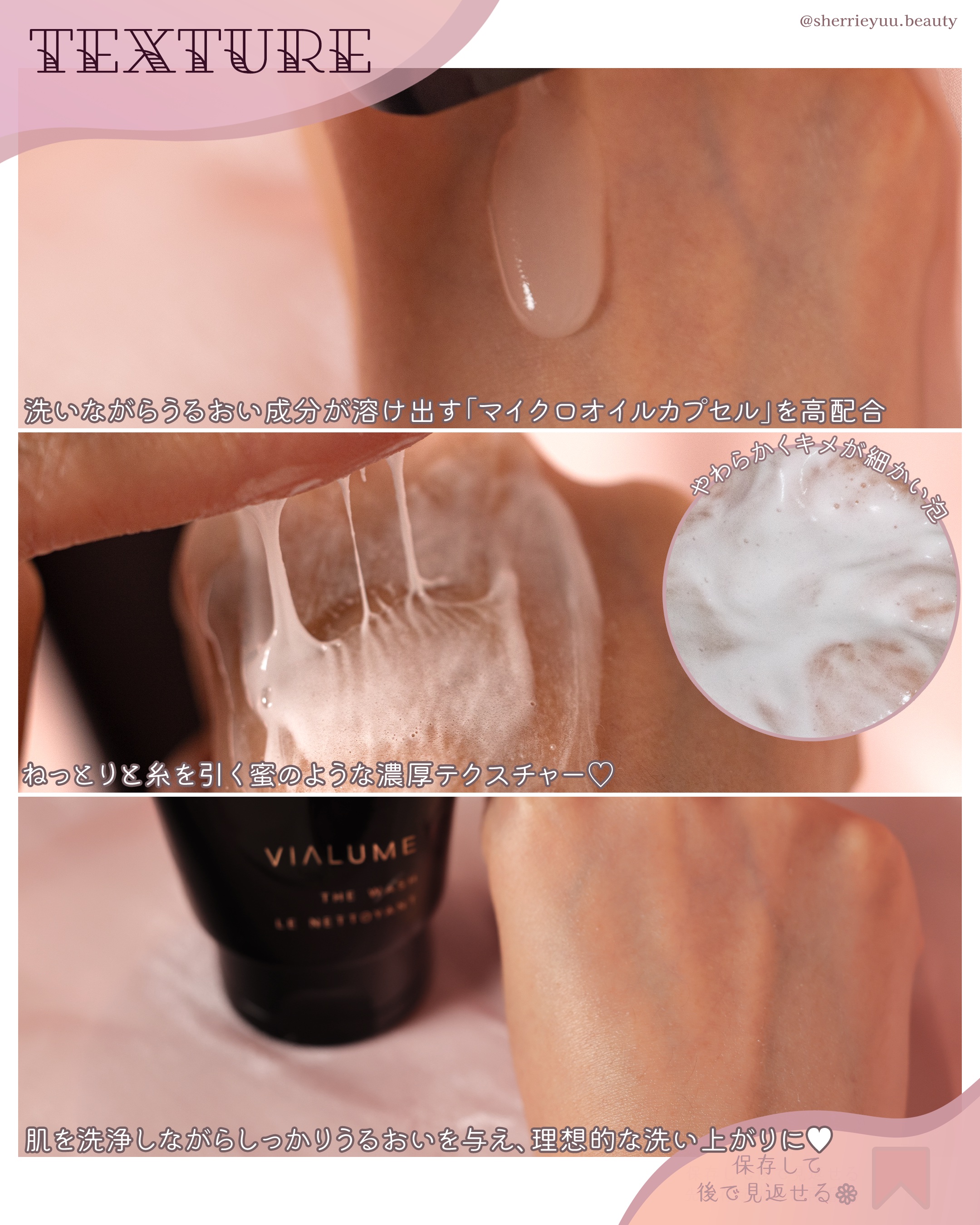 - 肌のすみずみまで美容成分※3が行き渡り、磨くように洗う“美容液洗顔” ※2。 ねっとり糸を引く艶蜜テクスチャーと、保湿成分が溶け出す独自開発の処方で、さっぱり落とすのに、しっかりうるおいに満ちているという、理想的な洗い上がりに導きます。 毎日洗うたびに、しっとりと素肌に艶を宿す。それはもはや“うるおいを与える洗顔”と言えるほど。 つるんとすべやかな、透けるように清らかな艶をたたえた素肌に。 洗顔からうるおいを与えることで、メイクアップの土台に艶を仕込み、SUQQUらしい上質な艶肌を仕立てるのに欠かせない洗顔料が「ヴィアルム ザ ウォッシュ」です。 ※2 美容液にも使われる保湿成分や基剤を配合 ※3 美容液にも使われる保湿成分や基剤