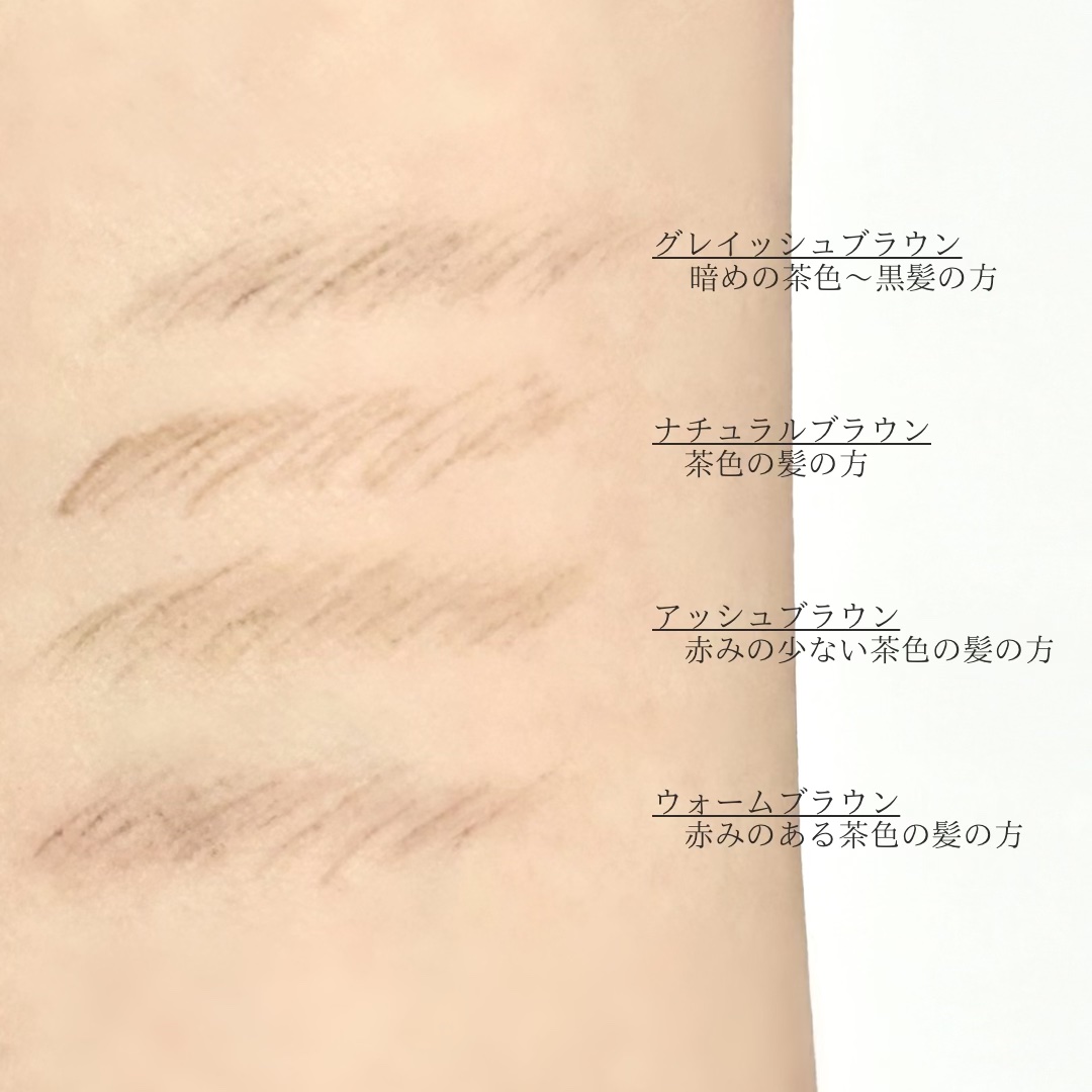 - ・より使いやすく!デザインとカラー展開をリニューアル! 「ブラシ付き」を分かりやすくパッケージと本体を改良。カラーも人気の3色にアップデート。 ・24時間消えない*耐久テスト*クリア処方! 汗・皮脂・水に強いウォータープルーフ処方で、朝描いた眉を夜までしっかりキープします。 ・まるで植毛のようにリアルな眉が描ける 【極細0.9mm芯】 繊細に描けるため、眉尻などの細かい部分の調整も自由自在。 【マイクロブラシ】 描いたラインを自然にぼかせる細型の極細毛ブラシで、よりリアルに。 パンテノール配合(保湿) ※2025年3月18日〜パッケージ・商品名・カラー展開 リニューアル