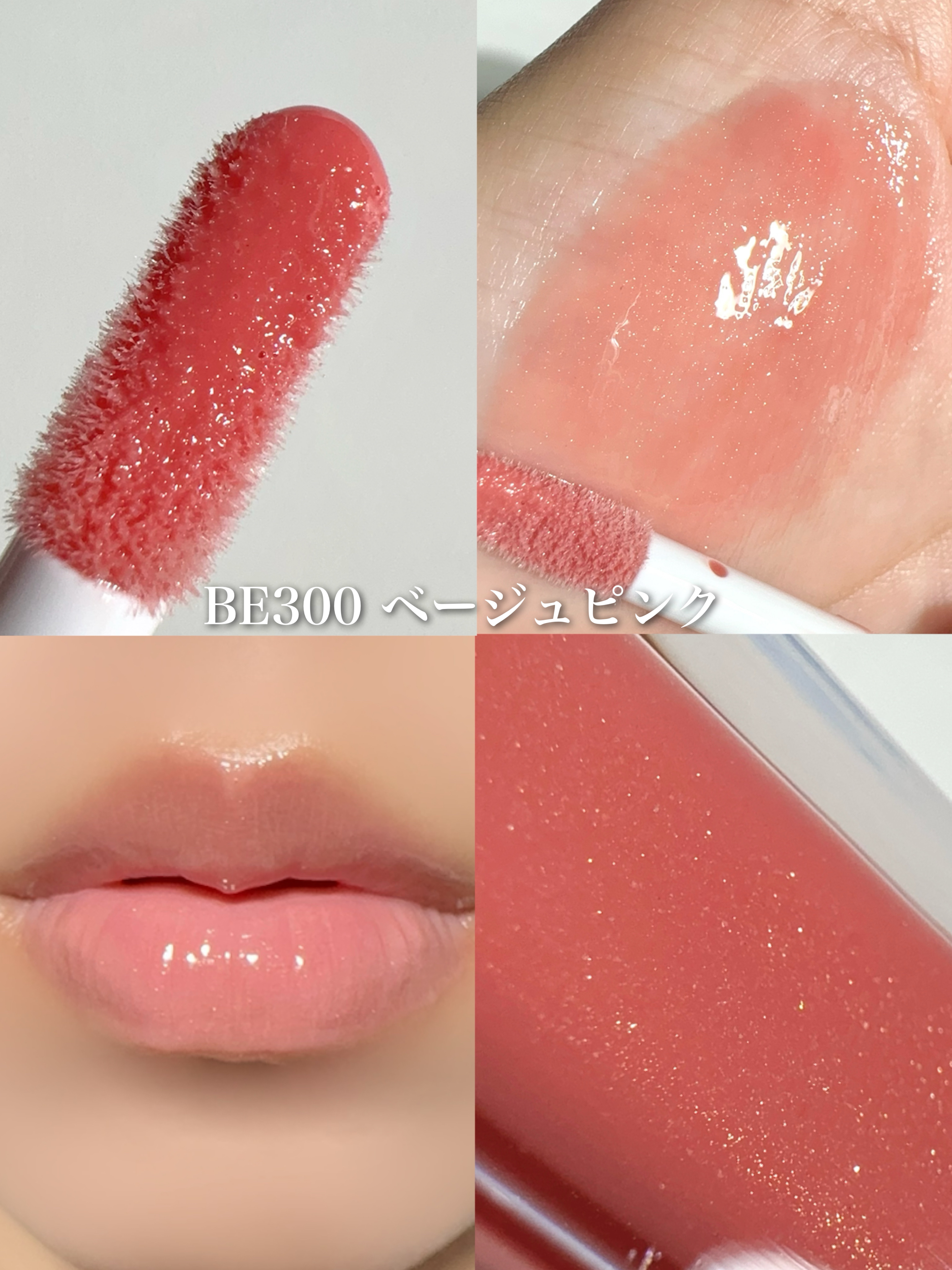 ねっちょりボリューム感あるテクスチャーだけど、ベタつきなく使いやすい。 ティントじゃない普通のグロスだから色もちは良くない。 発色ナチュラルだからこれだけでもいいけど、他のリップと合わせても可愛い!!
