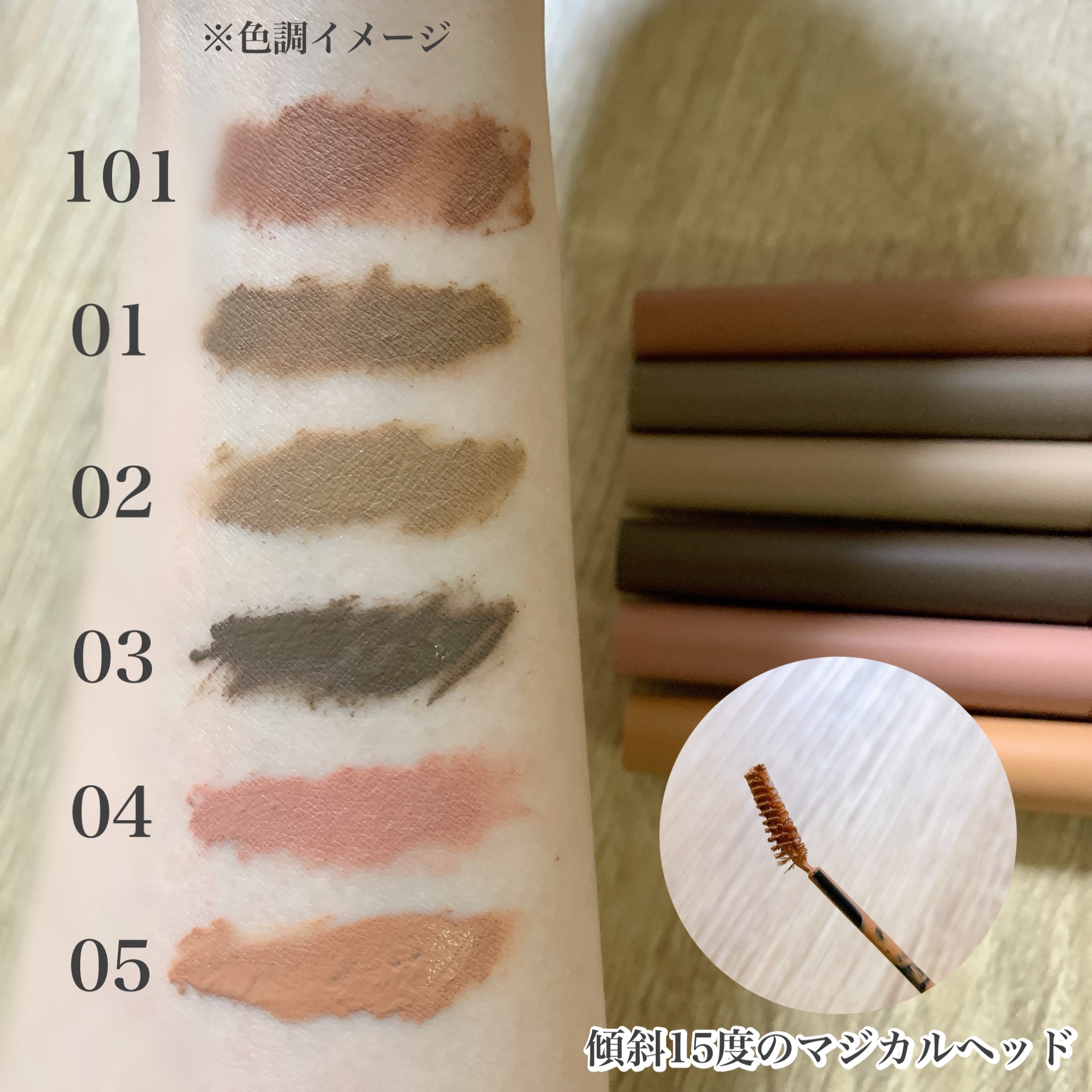 - 15度のマジカルヘッドが決め手!目指したのは“自然×簡単”な垢抜け眉。 ○クリーミーなテクスチャーで柔らかいのにしっかり発色。 ○特殊オイルゲーリング処方。 ゲルのチカラで心地よい塗布感と理想の仕上がりを両立 ・塗るとき:柔らかな使用感 ・塗ったあと:乾燥し毛流れを固定 ○眉毛1本1本をしなやかにコーティング。 ・フィルムフォーマーだから汗、水、皮脂に強いスマッジプルーフを実現。 ○4つのフリー 合成香料フリー/パラベンフリー/防腐剤フリー/動物実験フリー ○美容成分高配合(保湿効果) アルガニスピノサ核油/アンズ核油/カニナバラ果実油/ダイズ種子エキス/ハチミツエキス/ツバキ種子油