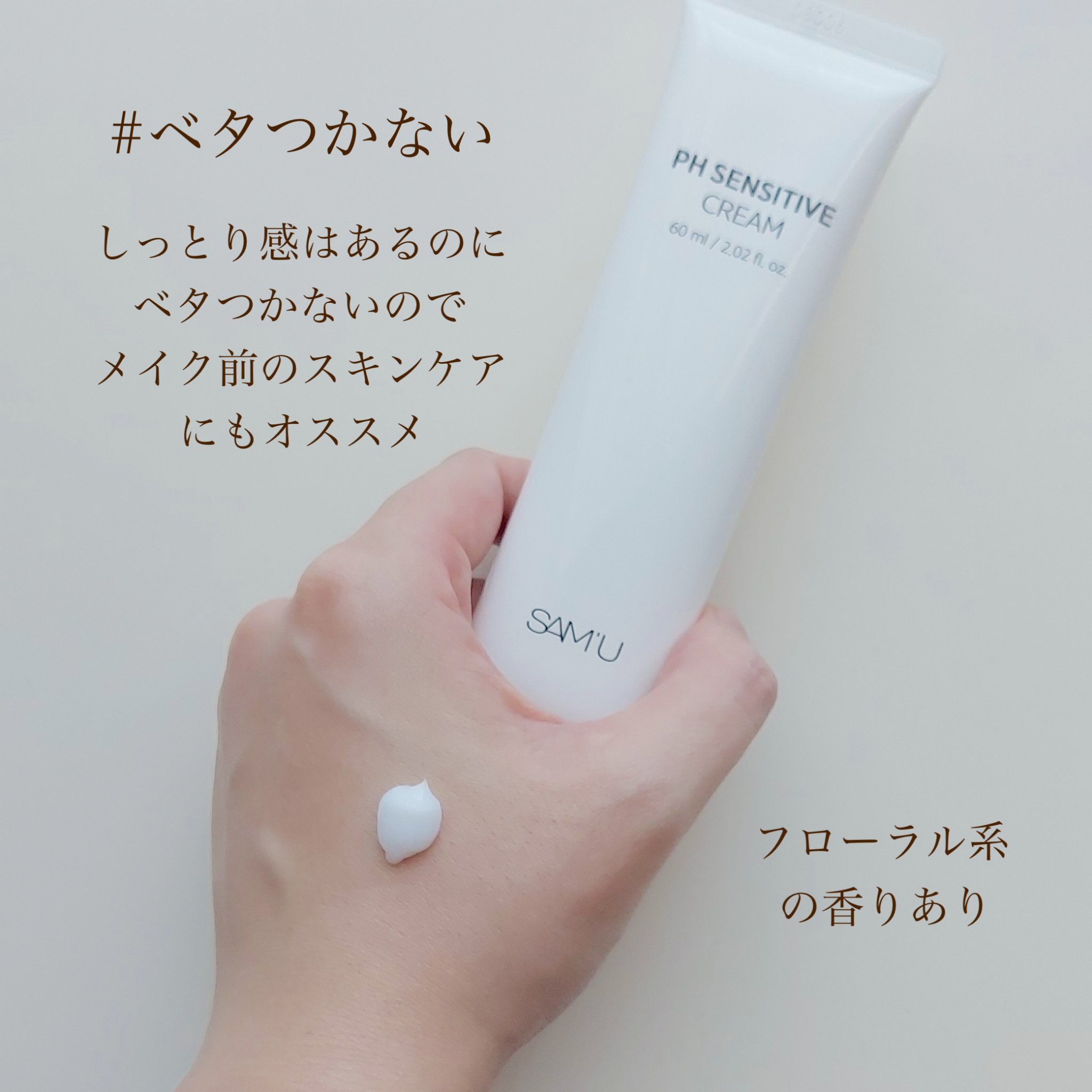 サミュアンバサダーとして商品提供をいただきましたSAM'U★PHセンシティブクリームチューブタイプ肌のpHバランスの調節及び肌バリアを整えてくれるフェイスクリームみずみずしさもあるクリームでベタつ感なく使え、しっとりした使い心地重すくないテク...