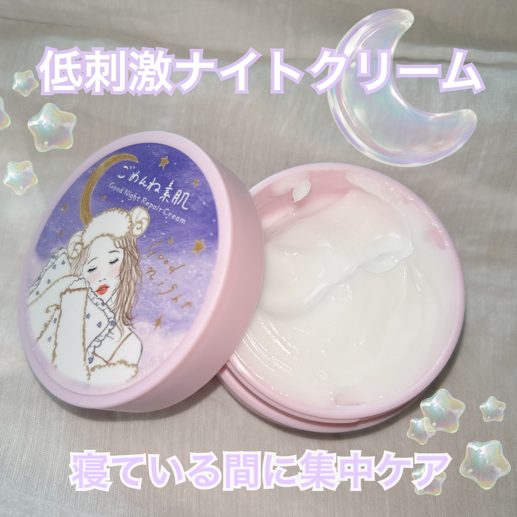 - 日中に負担をかけてしまった肌*を、寝ている間に集中ケアできる『おやすみリペアクリーム』 ①負担をかけた肌*も、寝ている間に集中ケア 摩擦感なく伸び広がり、ピタッと密着。夜の肌刺激(乾燥・摩擦)から守りながら、日中受けたダメージ*を集中ケアし、8時間熟睡したような肌へ導きます。 ②あれがちな肌にも使いやすい低刺激設計 弱酸性・無香料・無着色・アルコールフリー・パラベンフリー・紫外線吸収剤フリーの低刺激処方で、やさしい使い心地です。 *乾燥による