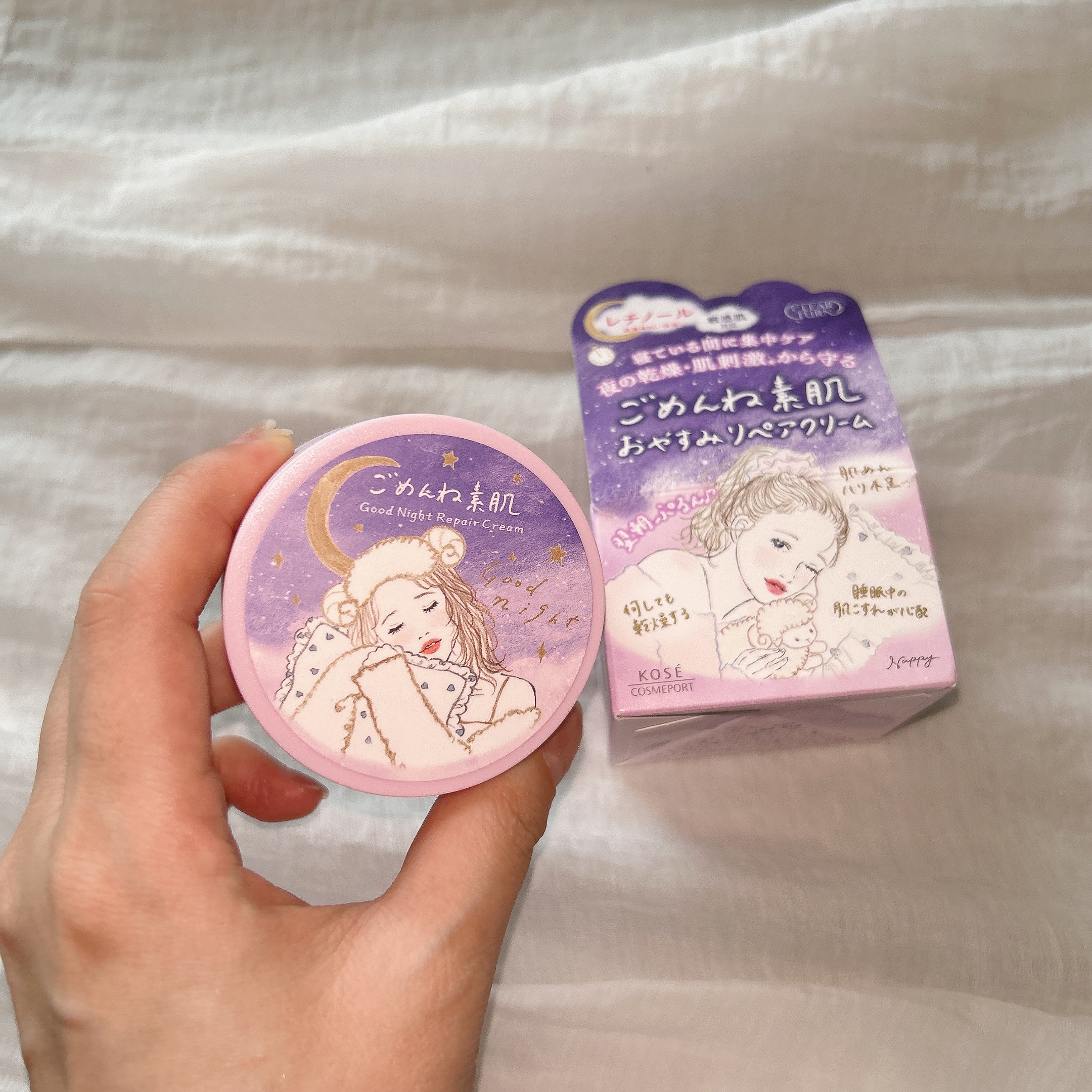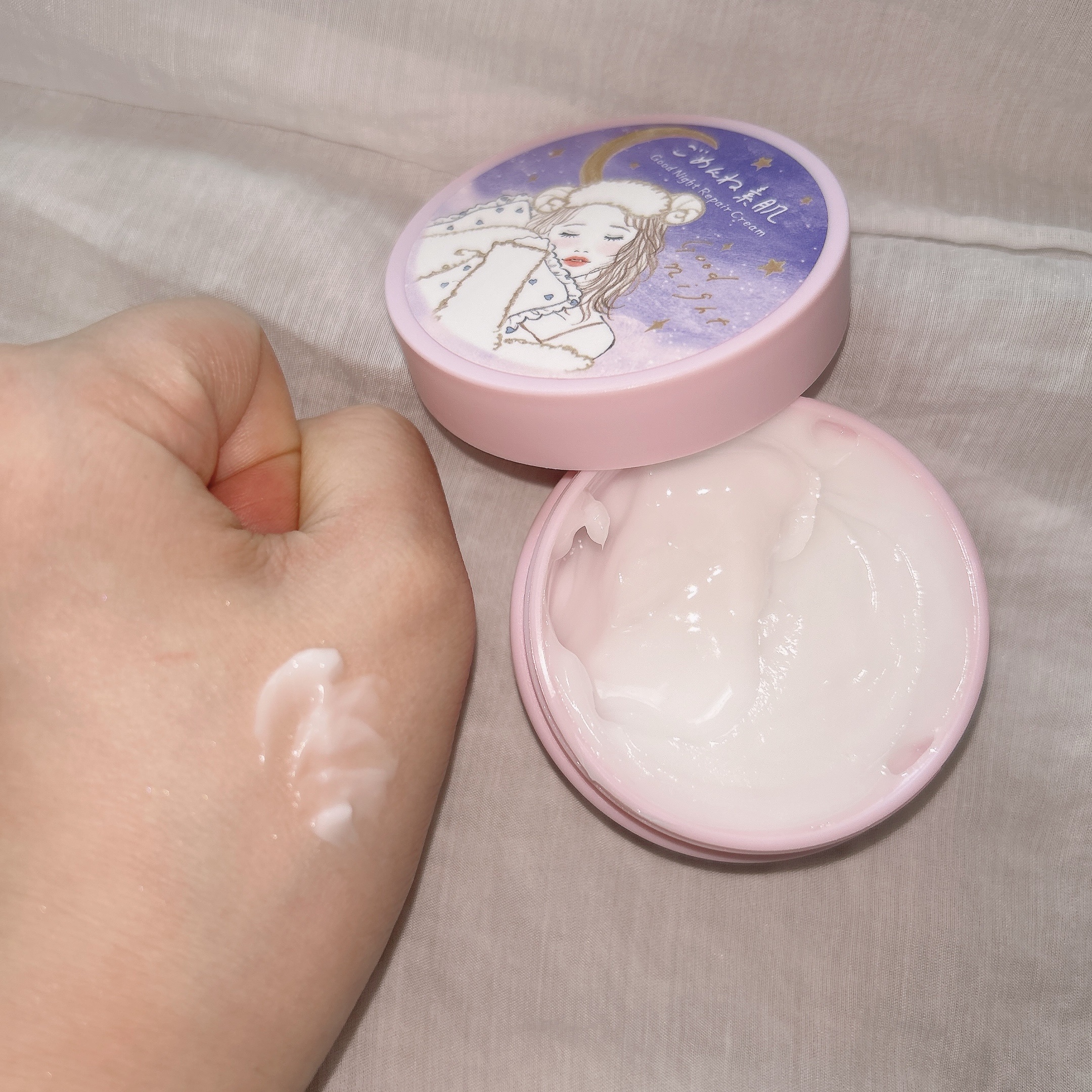 女の子のパケが可愛すぎ🤍 寝ている間に日中受けたダメージ*を集中リペア。 テクスチャーはけっこう固め。 シアバターのようにとろけて肌になじむ感じ。 乾燥しやすい季節にぴったり! あれがちな肌にも使いやすい低刺激設計(弱酸性・無香料・紫外線吸収剤フリー・無着色・アルコールフリー)なのも嬉しい✨