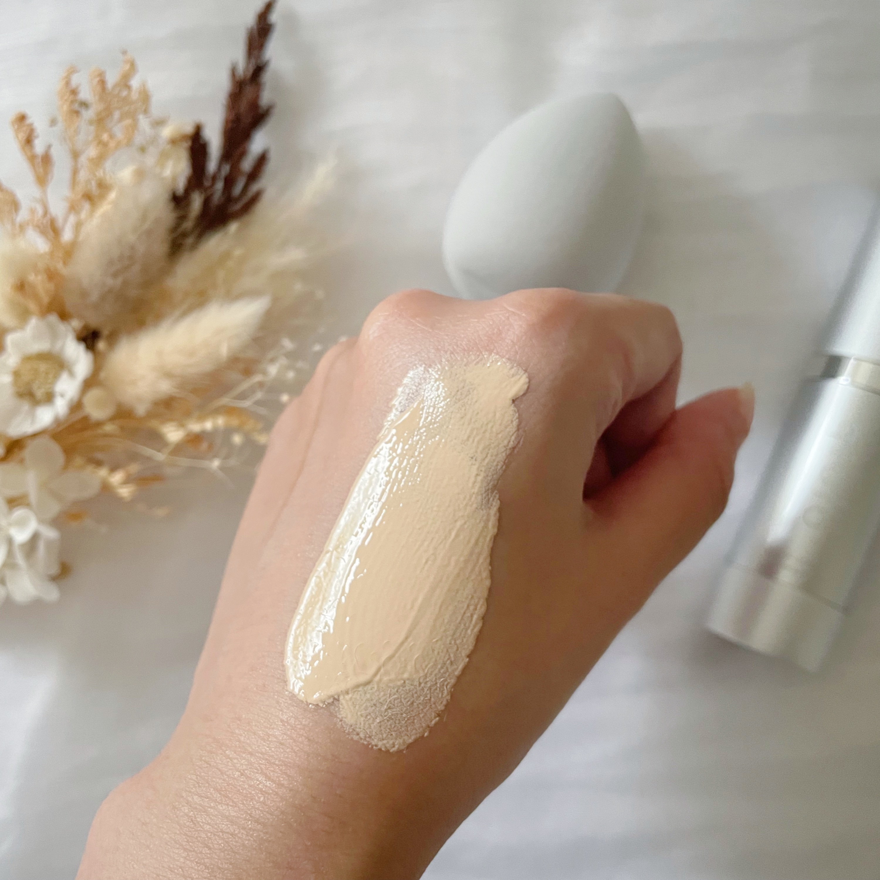 美容液ベースでつくられているファンデーションのため、肌のケアをしながらメイクができます✨ シワ改善・シミケア成分ナインシアミド、鎮静&肌管理成分グリチルリチン酸ジカリウム、CICA成分を含んでいます!🌻 気になるところには重ね塗りすることでコンシーラーがいらないところも魅力的💖
