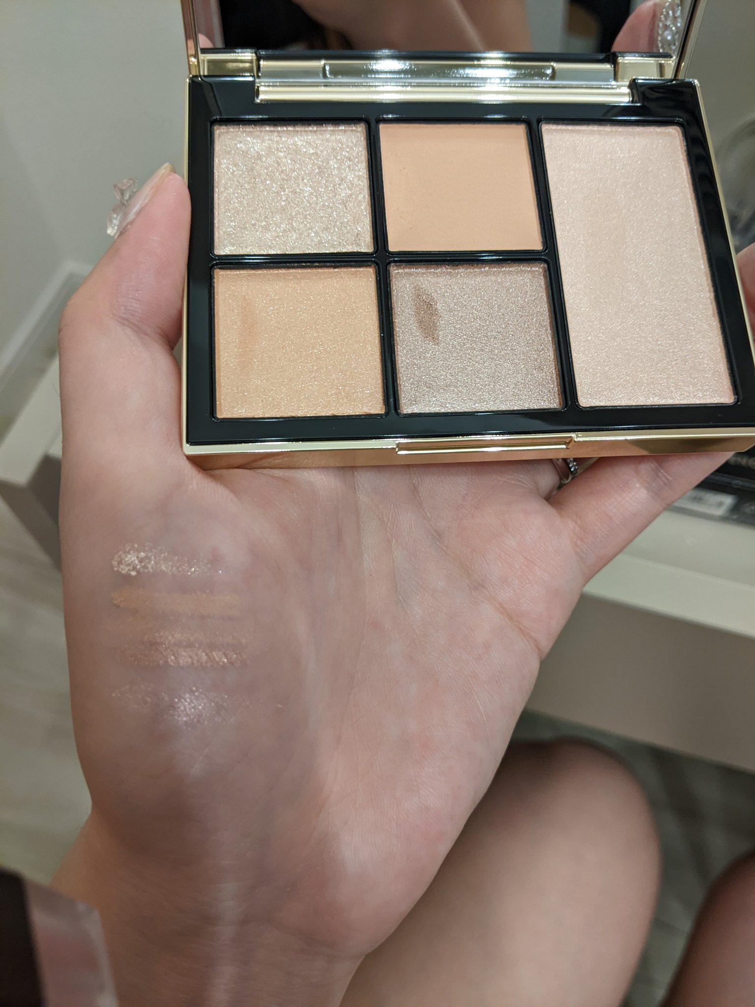 発色、粉質どれをとってもよいというのがわかりました 薄づきが好みなので締め色以外ふわっとしたアイシャドウブラシでのせてみたら良い感じでした トムフォードは初めての購入でしたがとても満足です