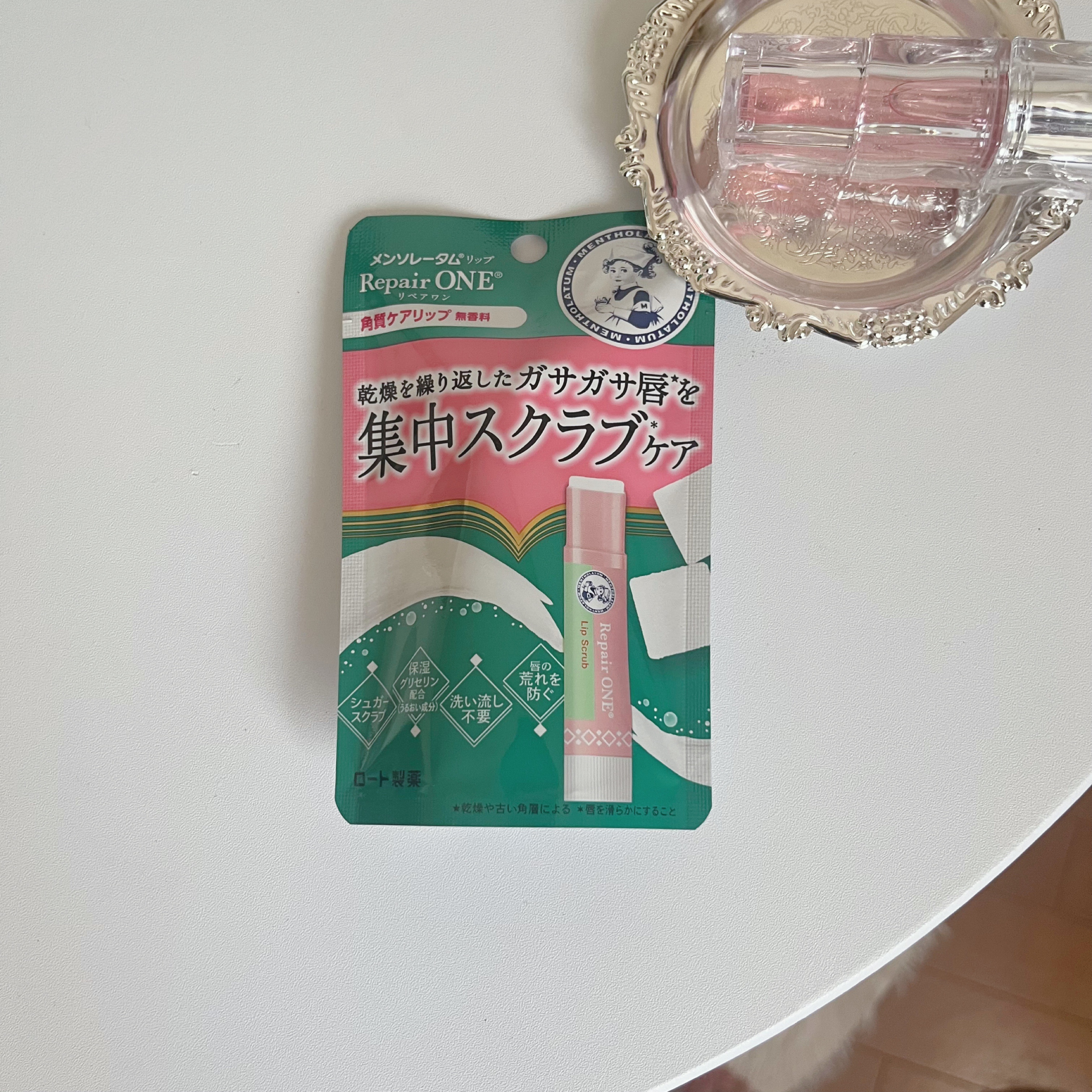 ロート製薬様から頂きました♪メンソレータムリペアワン角質ケアリップ乾燥を繰り返したガサガサ唇*に。唇の古い角質をオフしてくれる、シュガースクラブ(スクロース)配合。*乾燥や古い角質による ⚠️一度繰り出したら戻らない為ご注意下さい。粒々が心地...