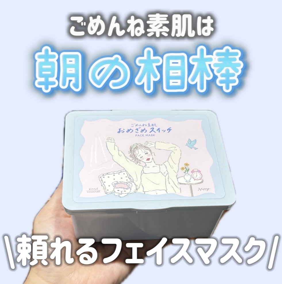 朝のお悩み速攻ケア ごめんね素肌 おめざめスイッチマスク ✔︎朝は眠くてスキンケアが面倒 ✔︎毛穴目立ちが気になる ✔︎なんだかメイクノリが悪い ✔︎きゅっとひきしめたい ひんやりした使い心地で、寝起きの肌をシャキッとひきしめ。みずみずしくべたつかないから、すぐにメイクができ、1日中キレイな肌つづく クリアターンのごめんね素肌シリーズからデイリータイプがでた!!見た目のかわいいイラストそのままで朝の悩みにアプローチしてくれる!
