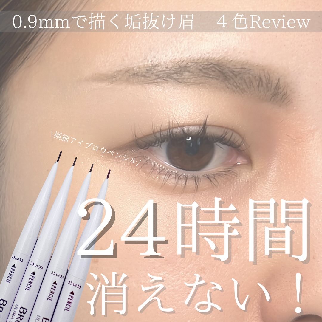 24時間落ちない! 極細0.9mm芯で簡単垢抜け眉! 自然にぼかせるマイクロブラシ付き! ペンシルの反対側にブラシがついていてぼかしてより自然な眉に仕上げられるし初心者さんにおすすめのアイテム👌🏻 24時間消えない、耐久テストクリア処方 こすっても全然落ちないし持ちがよかった☝🏻