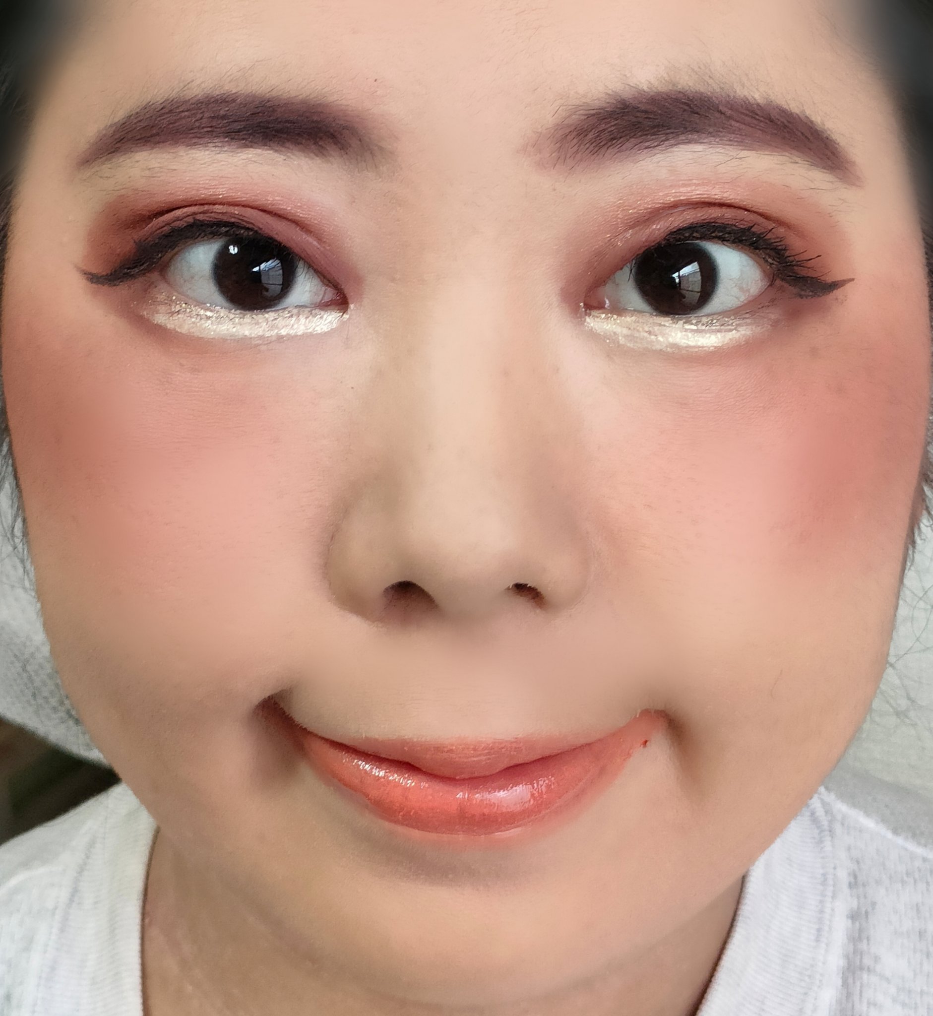 アイシャドウパレットは、UR GLAM アイシャドウパレットを、使用しました。 リップは、M・A・C リップスティック ピーチストックを、唇全体にまんべんなく塗ります。