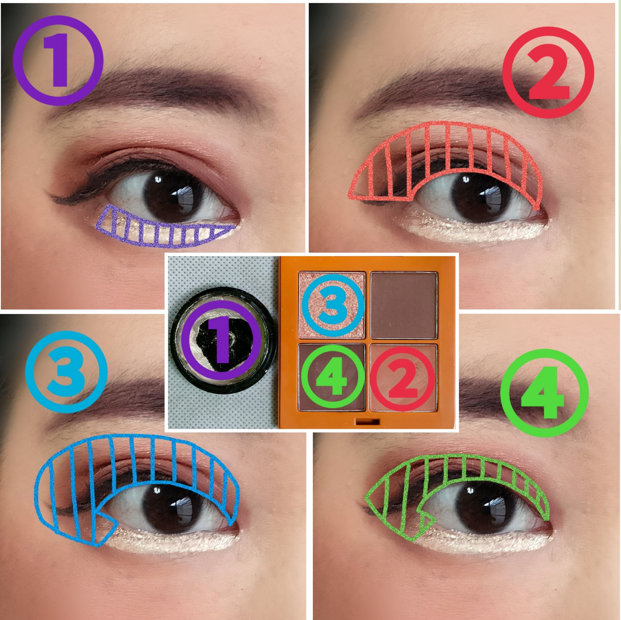 アイシャドウパレットは、URGLAM UR GLAMBLOOMING EYE COLOR PALETTE 02を、使用しました。 マスカラは、MAYBELLINE NEW YORK コロッサルボリュームエクスプレスを、まつ毛全体にまんべんなく塗ります。 リップは、wet 'n' wild MegaLast Lip Colorを、唇全体にまんべんなく塗ります。