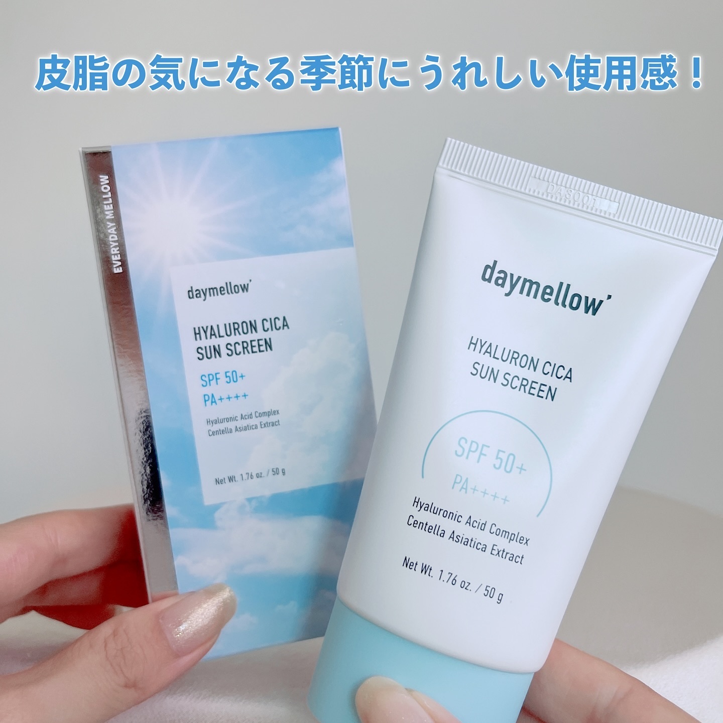 みずみずしく、サラサラしたテクスチャーでお肌に負担なく毎日使える日焼け止め🌞 ヒアルロン酸とCica成分で鎮静&水分ケア ・7つのヒアルロン酸 ・ツボクサエキス ベタ付き白浮きZERO! 化粧下地にもオススメ!
