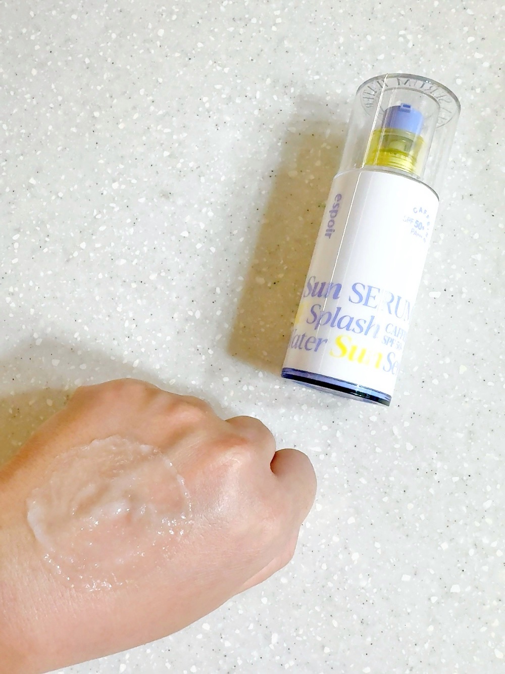 - 忙しい朝にスキンケアと日焼け止めを同時に完了!化粧水、クリーム、日焼け止め、化粧下地まで叶うオールインワン美容液。SPF 50+ / PA +++ カフェイン成分を最適な含量で配合し、朝のむくみをケア。フェイスラインをすっきり整えます。低分子ヒアルロン酸とペプチド配合で、肌を保湿し美容液の効果も。メイクの密着力をアップし、韓国メイクの特徴であるヘルシーなツヤを演出できる化粧下地としても◎ 使用に便利なポンプ式の容器を採用し、さらに時短を実現しました。 <サンクリームCE ミニ付き> +大人気商品エスポアのサンクリームセラミドのミニサイズがセットになって登場! 自然なトーンアップと水分たっぷりの保湿力でナチュラルなツヤを演出します。 【セット内容】 ウォータースプラッシュサンセラム50ml+サンクリームセラミド30ml <サンクリームフレッシュ CICA ミニ付き> +大人気商品エスポアのサンクリームフレッシュCICAのミニサイズがセットになって登場! 自然なトーンアップとさらっとした肌触りが、日焼け止めならではのべたつきをおさえます。CICA成分配合で、肌荒れ中や敏感肌のかたでも安心してご使用いただけます。 【セット内容】 ウォータースプラッシュサンセラム50ml+サンクリームフレッシュCICA30ml