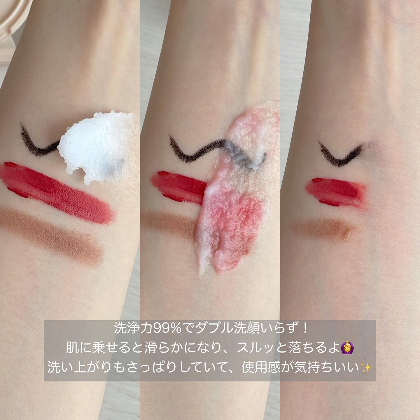 ウォータープルーフメイク99.99%という洗浄力でありながら、目に入っても染みづらい不思議なクレンジングバーム。 しっとり感があり、しっとりするけど皮膜感やぬるつきのない洗い上がりがとても気持ち良いです。 ブラックヘッド/ホワイトヘッド/角栓ケアも可能と一石二鳥🐥
