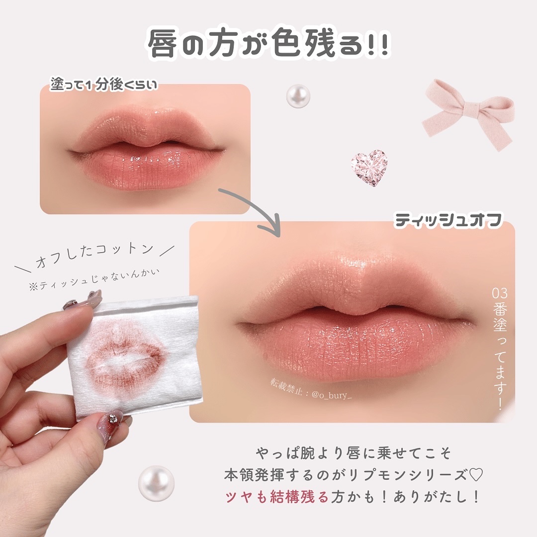 大人気リプモン、定番色の中で ブルベさん向けカラーを集めてみたよ🤍 元BAの美容オタクが、 ☁️お値段以上のプチプラコスメ紹介 ☁️元美容部員による成分解説 ☁️流行りがわかるまとめ投稿 など発信中🪄⸝⋆ ☞【 @o_bury_ 】🔍