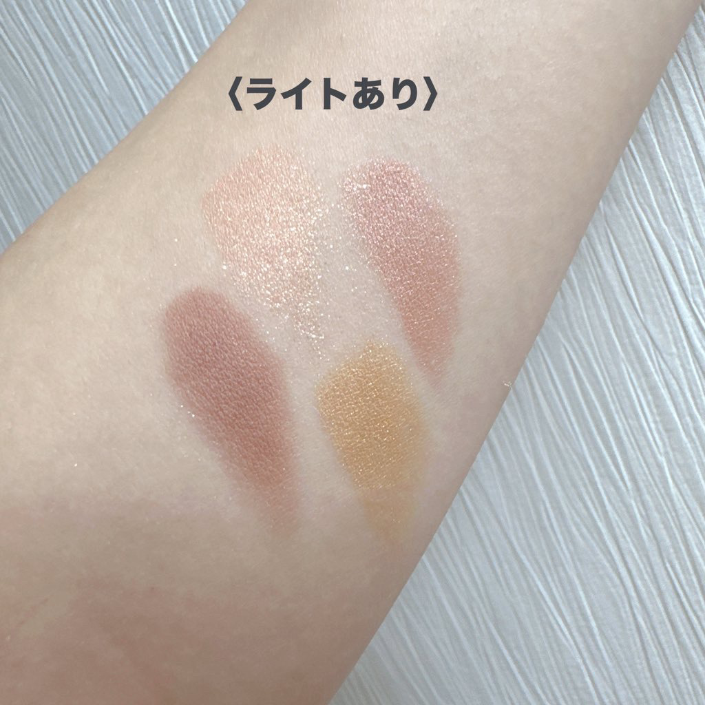 4種の異なる質感のシャドウが集まったアイテムで、どの色も綺麗に濁りなく発色✨ 一際目立つようなイエローが入っていたのでキュンとしてお迎えしました♡ 粉質もいいし、華やかさのあるルックに仕上がるいいパレットだなーと思ってます🥰
