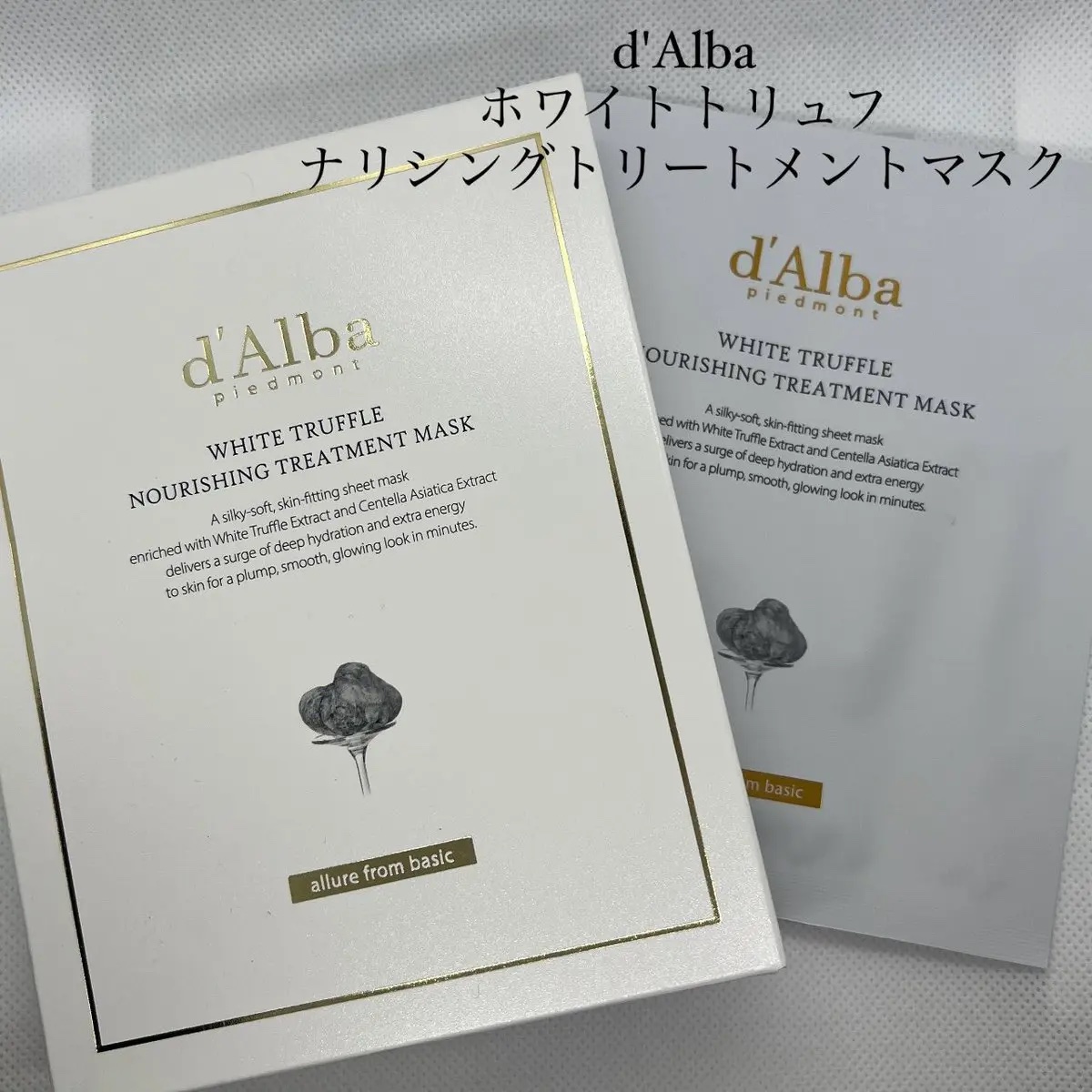 ダルバ独自成分トリュフェロール™︎配合! 5種類のヒアルロン酸とホワイトトリュフ含有のセラムで肌に必要な成分を与えてくれる🫧 程よい厚みで液ダレしにくい スキンフィットヴィーガンシートが剥がすまでしっかり密着感あって◎ 水分チャージできてツヤっともちっとした仕上がりが好き🕊️ パックを取り出したあとも袋の中に美容液が結構残ってるからパックを剥がした後に顔や首にも塗布してる💭