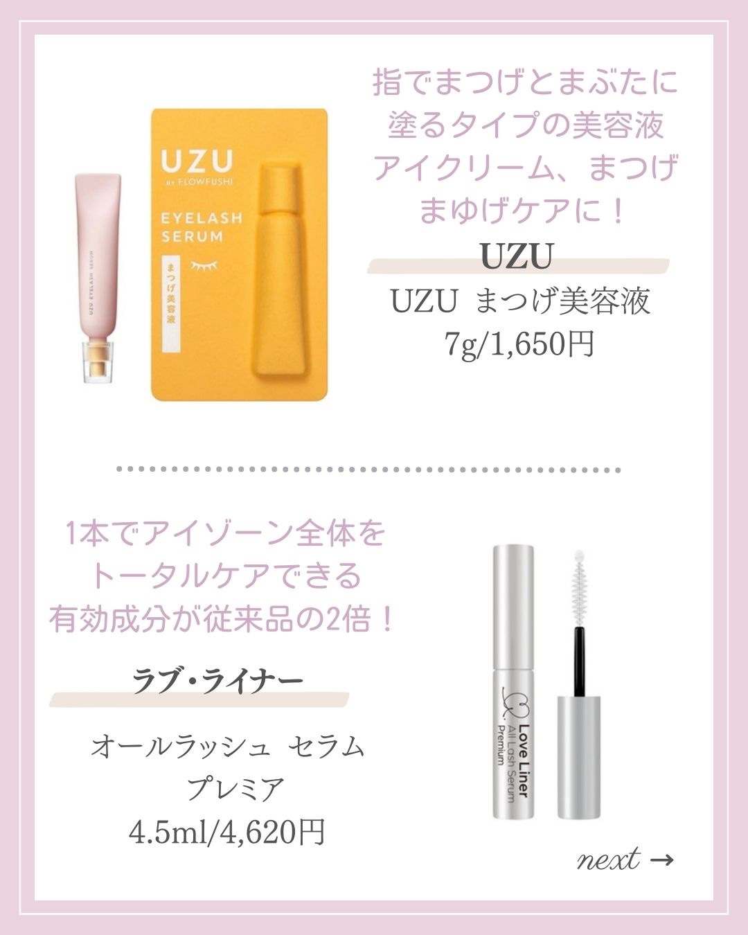 おすすめアイテムUZU BY FLOWFUSHI×まつげ美容液
