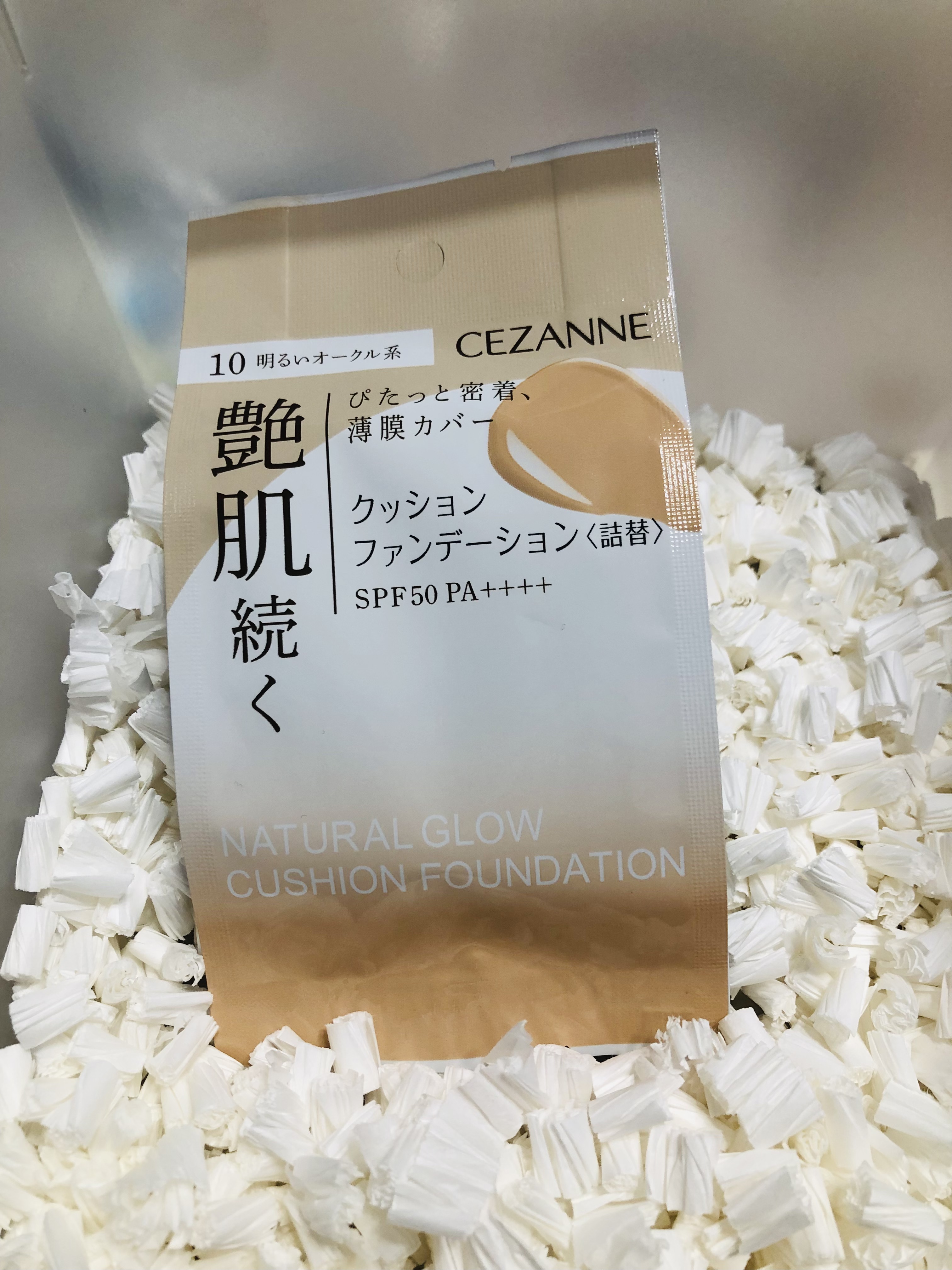 - <本体> 薄膜がぴたっと密着し艶肌続くクッションファンデ。 シミ・毛穴・色ムラをカバーしてお肌にぴたっと密着しメイク崩れしにくい。 5種の保湿成分(スクワラン、セラミドNP、ベルガモット果実エキス、ヒアルロン酸Na、アーチチョーク葉エキス)と高保湿オイルを配合。 重ねても厚塗りになりにくく、まるでお肌の内側から潤ったような艶肌仕上げ。 SPF50 PA++++。 石鹸で落とせます。(※単品使用の場合) <パフ> セザンヌのクッションファンデーションに使える替パフ2個入。 広い面や細部までも使いやすいしずく型パフで、ファンデーションをムラなくきれいに仕上げます。 クッション面にパフを押し当て、ファンデーションを適量とり、軽くたたくようにお肌に塗布してください。 ※汚れたときは、うすめた台所用中性洗剤で軽く押し洗いをし、よく洗い流してください。その後水気を切り、陰干ししてください。