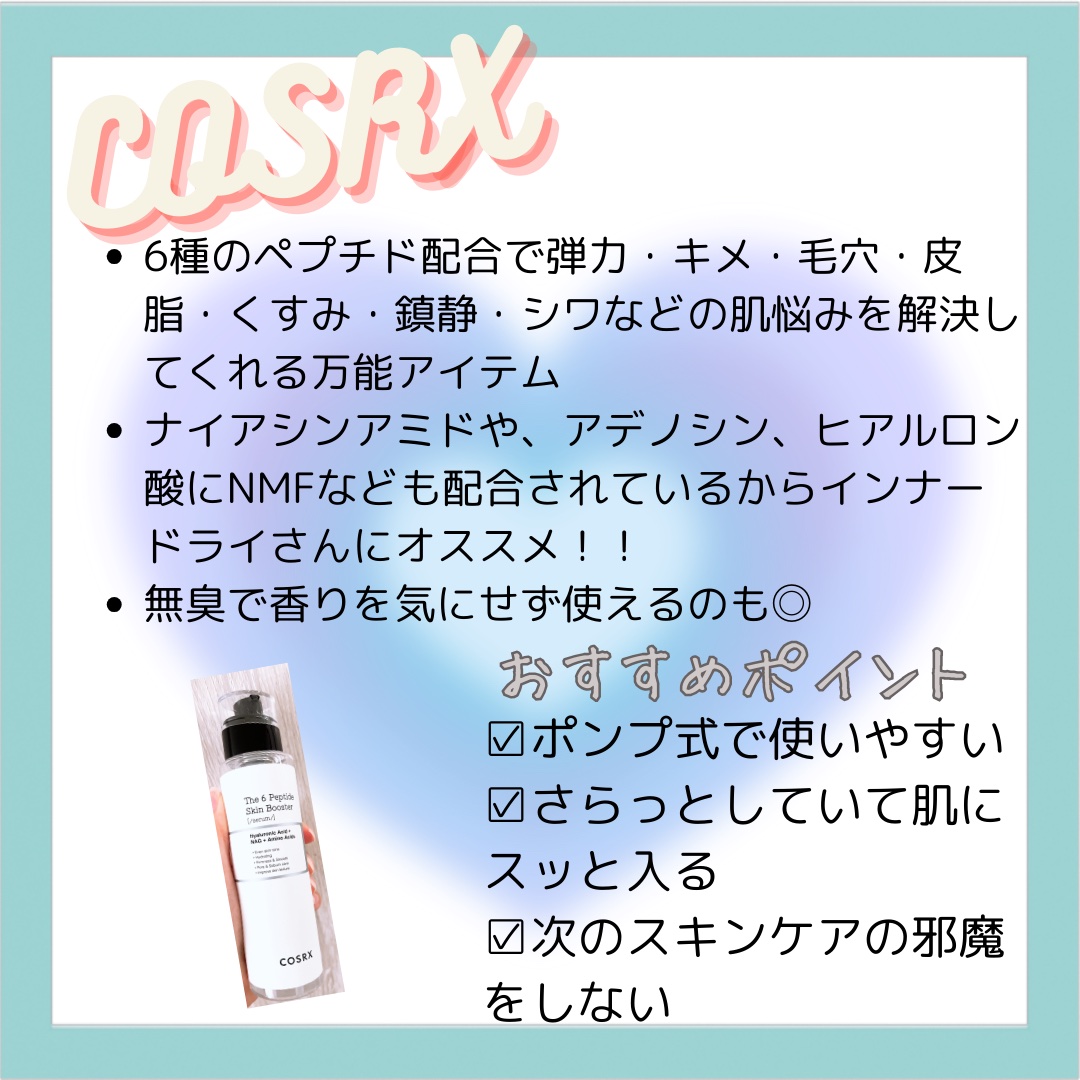 COSRX RXザ・6ペプチドスキンブースターセラム | 2,480円 |