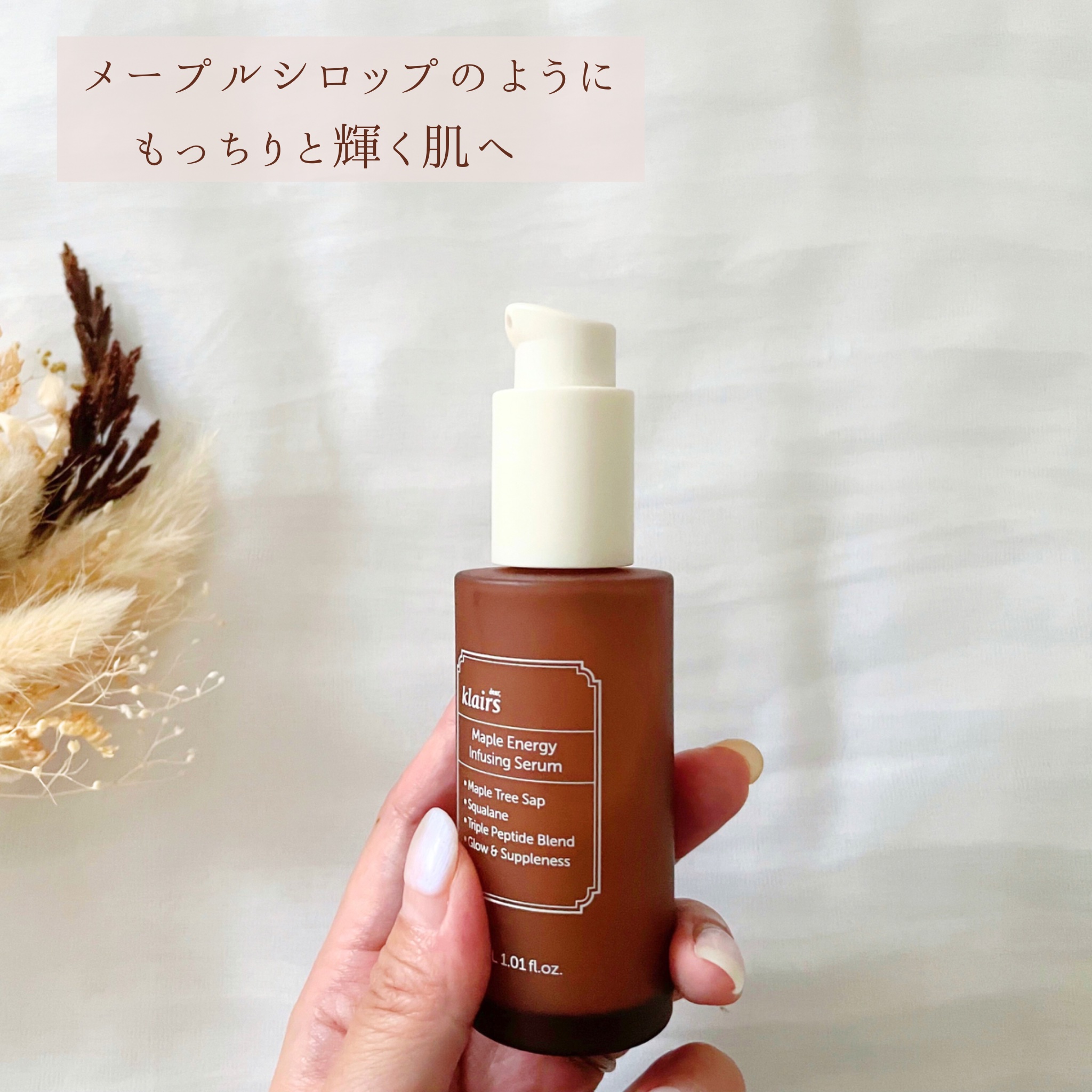 毛穴バリアセットとうたわれているセラムとクリーム✨ どちらもあまり香りはせず、ラインで使うと保湿感が気持ちいいです😊 メープルエナジーインフュージングセラム とろみはありますが傾けると流れるくらいのテクスチャー 肌に吸い込まれるように入っていってハリとツヤでもちっとした感触に🥰 メープルという名の通りカエデのエキスを抽出していて -10度とかになる寒いカナダの冬を乗り越えて成長するカエデのアクティブ成分が詰め込まれてるそう😳