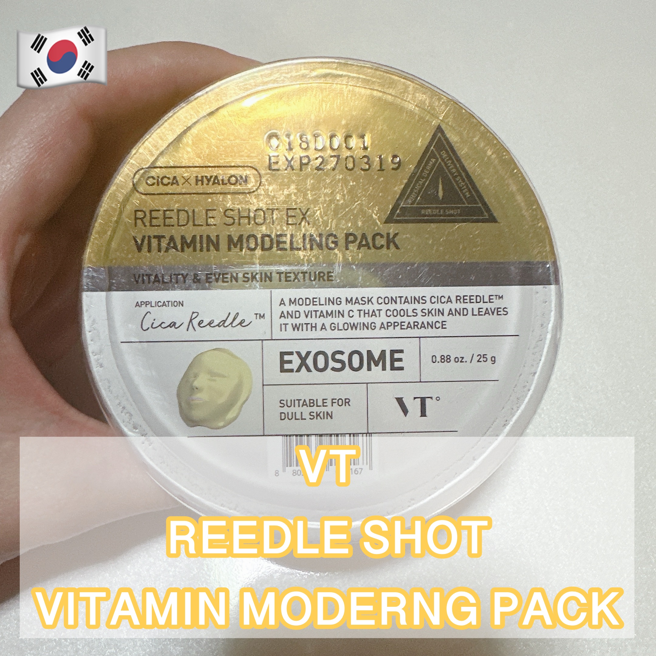 - 混ぜて作るラッピングパック!スキンケアの最後の段階に肌に塗り広げることで、パックが美容成分たちを角質層に送り込みます。さらに、剥がす際には肌の余分な皮脂・汚れを除去!肌悩みに合わせて全4種からチョイス! リードルショットEX ビタミンモデリングパックはVTの独自成分CICA REEDLE™*1+エクソソーム*2+ビタミン*3を配合。乾燥でくすんでみえる肌にひんやりとした使用感で、肌の角質層までスキンケアの美容成分の浸透をサポートし、ツヤケアをします。贅沢スキンケア時間をお求めのあなたへ。 *1 ツボクサエキス(整肌)、シリカ(スクラブ) *2 ヒトサイタイ間葉幹細胞エクソソーム(保湿) *3 アスコルビン酸(製品の酸化防止)