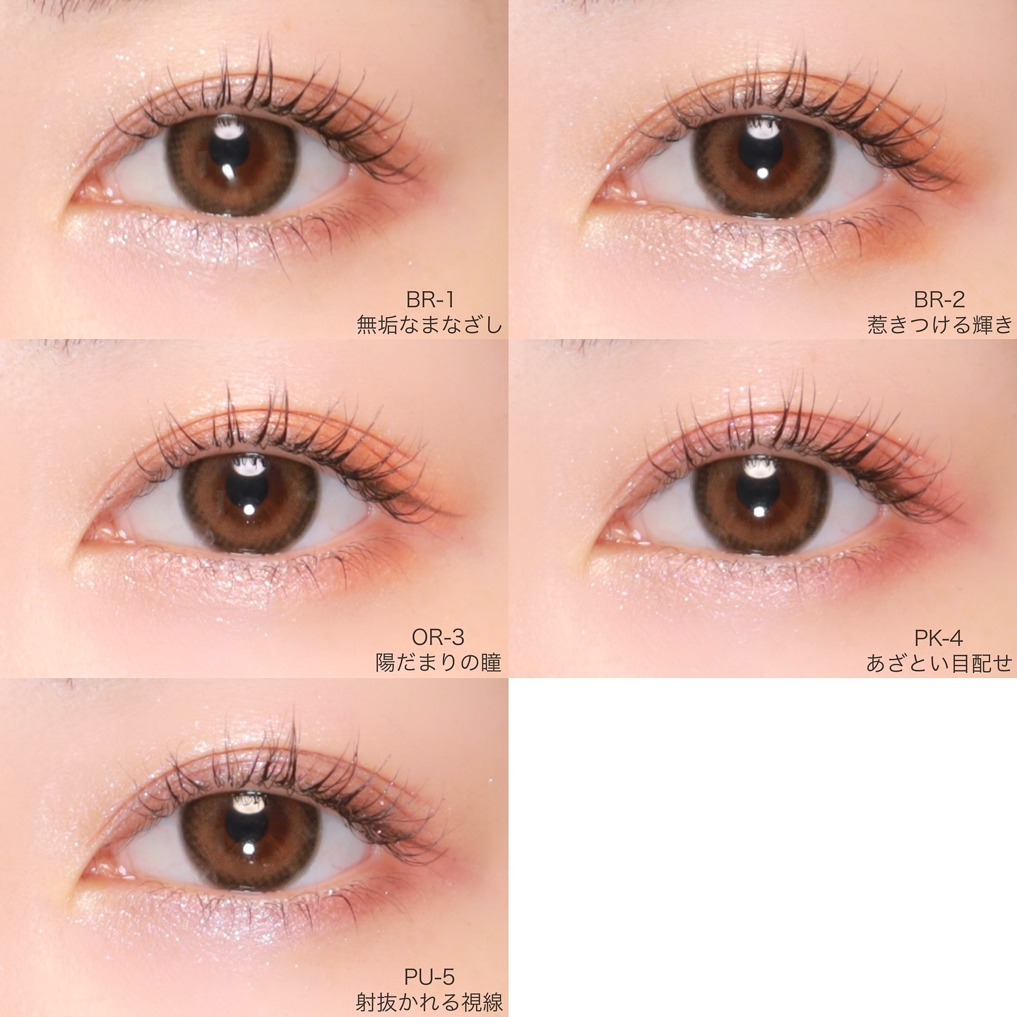 - <BR-1 無垢なまなざし> ジメチコン、タルク、水添ポリイソブテン、ホウケイ酸(Ca/Al)、ミネラルオイル、ホウケイ酸(Ca/チタン)、シリカ、ワセリン、ジフェニルシロキシフェニルトリメチコン、(ジメチコン/ビニルジメチコン)クロスポリマー、ラウロイルリシン、トリメリト酸トリトリデシル、トコフェロール、ヒアルロン酸Na、DPG、(PEG-15/ラウリルジメチコン)クロスポリマー、(ビニルジメチコン/ラウリルジメチコン)クロスポリマー、アルミナ、イソドデカン、イソノナン酸イソトリデシル、クエン酸Na、スクワラン、ステアリン酸Mg、セスキステアリン酸ソルビタン、トリエチルヘキサノイン、ナイロン-12、ラウロイルグルタミン酸ジ(フィトステリル/オクチルドデシル)、合成フルオロフロゴパイト、酸化スズ、水酸化Al、グンジョウ、マイカ、酸化チタン、酸化亜鉛、酸化鉄 <BR-2 惹きつける瞬き> ジメチコン、水添ポリイソブテン、ホウケイ酸(Ca/Al)、ミネラルオイル、タルク、ホウケイ酸(Ca/チタン)、ワセリン、シリカ、ジフェニルシロキシフェニルトリメチコン、(ジメチコン/ビニルジメチコン)クロスポリマー、ラウロイルリシン、トリメリト酸トリトリデシル、トコフェロール、ヒアルロン酸Na、DPG、(PEG-15/ラウリルジメチコン)クロスポリマー、(ビニルジメチコン/ラウリルジメチコン)クロスポリマー、アルミナ、イソドデカン、イソノナン酸イソトリデシル、クエン酸Na、スクワラン、ステアリン酸Mg、セスキステアリン酸ソルビタン、トリエチルヘキサノイン、ナイロン-12、ラウロイルグルタミン酸ジ(フィトステリル/オクチルドデシル)、合成フルオロフロゴパイト、酸化スズ、グンジョウ、マイカ、酸化チタン、酸化亜鉛、酸化鉄 <OR-3 陽だまりの瞳> ジメチコン、タルク、水添ポリイソブテン、ホウケイ酸(Ca/Al)、ミネラルオイル、合成フルオロフロゴパイト、ホウケイ酸(Ca/チタン)、ワセリン、シリカ、ジフェニルシロキシフェニルトリメチコン、(ジメチコン/ビニルジメチコン)クロスポリマー、ラウロイルリシン、トリメリト酸トリトリデシル、トコフェロール、ヒアルロン酸Na、DPG、(PEG-15/ラウリルジメチコン)クロスポリマー、(ビニルジメチコン/ラウリルジメチコン)クロスポリマー、アルミナ、イソドデカン、イソノナン酸イソトリデシル、クエン酸Na、スクワラン、ステアリン酸Mg、セスキステアリン酸ソルビタン、トリエチルヘキサノイン、ナイロン-12、ラウロイルグルタミン酸ジ(フィトステリル/オクチルドデシル)、酸化スズ、水酸化Al、グンジョウ、マイカ、酸化チタン、酸化亜鉛、酸化鉄 <PK-4 あざとい目配せ> ジメチコン、タルク、水添ポリイソブテン、ホウケイ酸(Ca/Al)、ミネラルオイル、ホウケイ酸(Ca/チタン)、ワセリン、シリカ、ジフェニルシロキシフェニルトリメチコン、(ジメチコン/ビニルジメチコン)クロスポリマー、ラウロイルリシン、トリメリト酸トリトリデシル、合成フルオロフロゴパイト、トコフェロール、ヒアルロン酸Na、DPG、(PEG-15/ラウリルジメチコン)クロスポリマー、(ビニルジメチコン/ラウリルジメチコン)クロスポリマー、アルミナ、イソドデカン、イソノナン酸イソトリデシル、クエン酸Na、スクワラン、ステアリン酸Mg、セスキステアリン酸ソルビタン、トリエチルヘキサノイン、ナイロン-12、ラウロイルグルタミン酸ジ(フィトステリル/オクチルドデシル)、酸化スズ、グンジョウ、マイカ、酸化チタン、酸化亜鉛、酸化鉄、赤226 <PU-5 射抜かれる視線> ジメチコン、タルク、ホウケイ酸(Ca/Al)、合成フルオロフロゴパイト、水添ポリイソブテン、ミネラルオイル、ホウケイ酸(Ca/チタン)、ワセリン、シリカ、ジフェニルシロキシフェニルトリメチコン、(ジメチコン/ビニルジメチコン)クロスポリマー、ラウロイルリシン、トリメリト酸トリトリデシル、トコフェロール、ヒアルロン酸Na、DPG、(PEG-15/ラウリルジメチコン)クロスポリマー、(ビニルジメチコン/ラウリルジメチコン)クロスポリマー、アルミナ、イソドデカン、イソノナン酸イソトリデシル、クエン酸Na、スクワラン、ステアリン酸Mg、セスキステアリン酸ソルビタン、トリエチルヘキサノイン、ナイロン-12、ラウロイルグルタミン酸ジ(フィトステリル/オクチルドデシル)、酸化スズ、水酸化Al、クロルフェネシン、グンジョウ、マイカ、酸化チタン、酸化亜鉛、酸化鉄