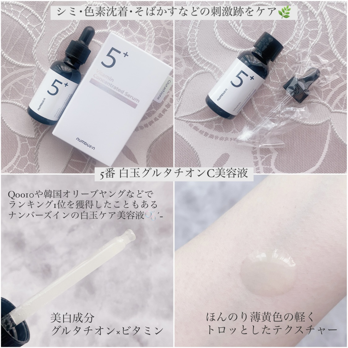 \numbuzin5番シリーズ✨️/暗い肌トーン、シミ、くすみ、ニキビ跡など、5番ラインの肌悩みに困ってない??そんなときはnumbuzinの、5番シリーズ!!今回特に良かった白玉グルタチオンC美容液をメインにご紹介💕⋆⋆☆5番白玉グルタチオ...