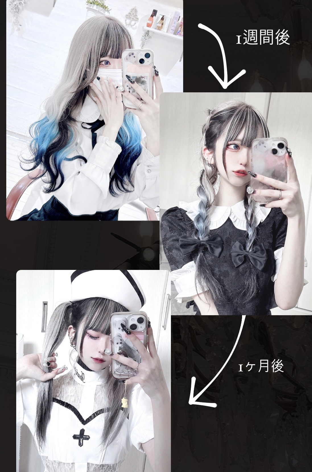 - <パープル> 水、ココイルグルタミン酸TEA、オレフィン(C14-16)、スルホン酸Na、コカミドプロピルベタイン、ラウリルヒドロキシスルタイン、加水分解ケラチン(羊毛)、ローマカミツレ花エキス、オドリコソウ花エキス、ゴボウ根エキス、セイヨウキズタ葉/茎エキス、アルニカ花エキス、オランダガラシ葉/茎エキス、ニンニク根エキス、ローズマリー葉エキス、セイヨウアカマツ球果エキス、グリチルリチン酸2K、ボタンエキス、フユボダイジュ花エキス、コンフリー葉エキス、BG、EDTA-2Na、PPG-2コカミド、エタノール、クエン酸、グリセリン、コカミドメチルMEA、フェノキシエタノール、ポリクオタニウム-10、ラウリン酸PG、安息香酸Na、香料、(+/-)紫401、HC青2、塩基性赤51 <ピンク> 水、ココイルグルタミン酸TEA、オレフィン(C14-16)、スルホン酸Na、コカミドプロピルベタイン、ラウリルヒドロキシスルタイン、加水分解ケラチン(羊毛)、ローマカミツレ花エキス、オドリコソウ花エキス、ゴボウ根エキス、セイヨウキズタ葉/茎エキス、アルニカ花エキス、オランダガラシ葉/茎エキス、ニンニク根エキス、ローズマリー葉エキス、セイヨウアカマツ球果エキス、グリチルリチン酸2K、ボタンエキス、フユボダイジュ花エキス、コンフリー葉エキス、BG、EDTA-2Na、PPG-2コカミド、エタノール、クエン酸、グリセリン、コカミドメチルMEA、フェノキシエタノール、ポリクオタニウム-10、ラウリン酸PG、安息香酸Na、香料、(+/-)紫401、HC青2、塩基性赤51 <アッシュ> 水、ココイルグルタミン酸TEA、オレフィン(C14-16)スル ホン酸Na、コカミドプロピルベタイン、ラウリルヒドロキシスルタ イン、加水分解ケラチン(羊毛)、ローマカミツレ花エキス、オドリコソウ花エキス、ゴボウ根エキス、セイヨウキズタ葉/茎エキス、アルニカ花エキス、オランダガラシ葉/茎エキス、ニンニク根エキス、ローズマリー葉エキス、セイヨウアカマツ球果エキス、グリチルリチン酸2K、ボタンエキス、フユボダイジュ花エキス、コンフリー葉エキス、BG、EDTA-2Na、PPG-2コカミド、エタノール、クエン酸、グリセリン、コカミドメチルMEA、フェノキシエタノール、ポリクオタニウム-10、ラウリン酸PG、安息香酸Na、香料、(+/-)紫401、HC青2、塩基性赤51、塩基性青99、塩基性茶16、塩基性橙31