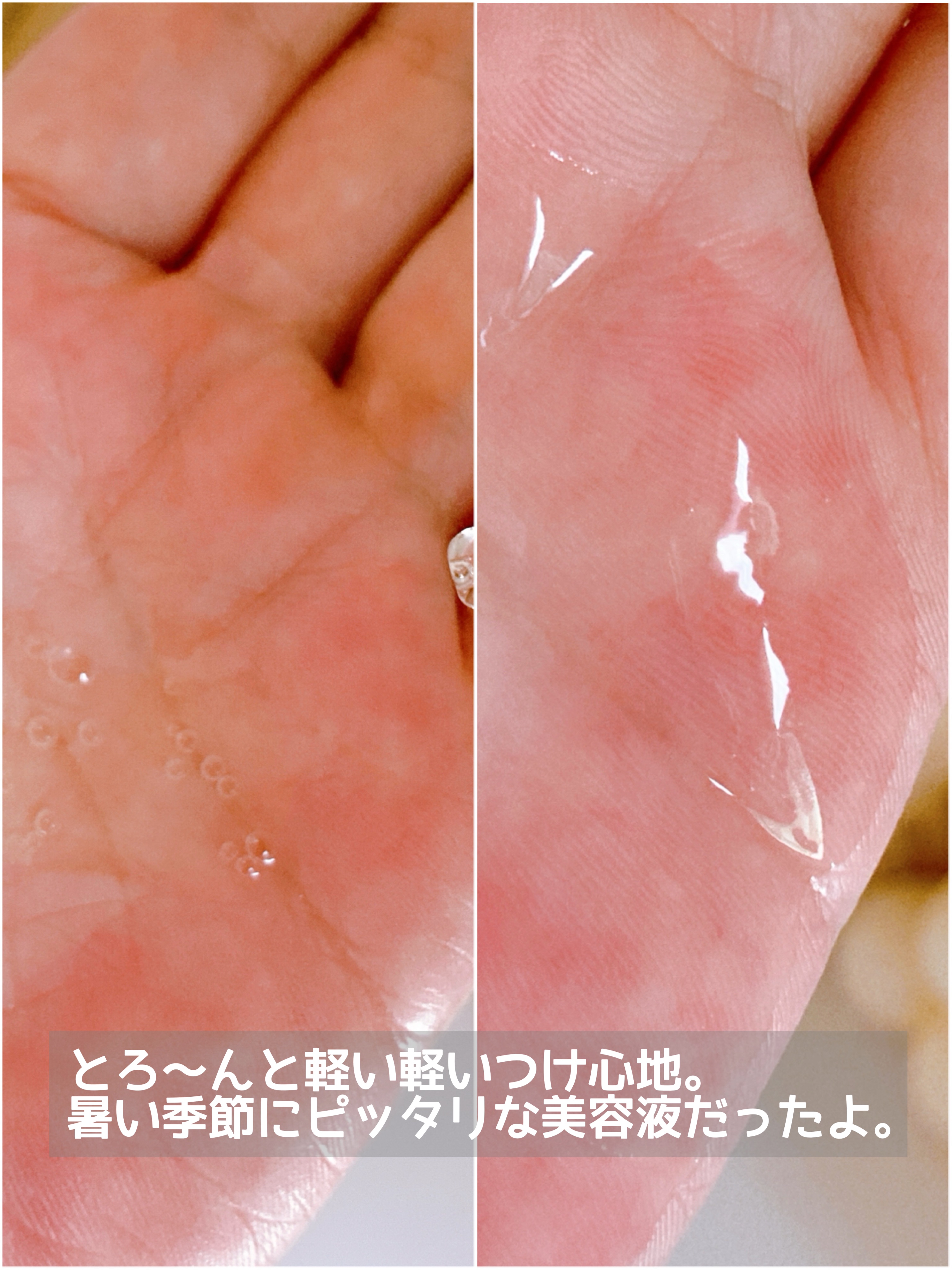 | とろみはあるけどベタつかず、伸ばしていくと肌がツヤっぽくなっていく◎ | 詳細を見る | |||