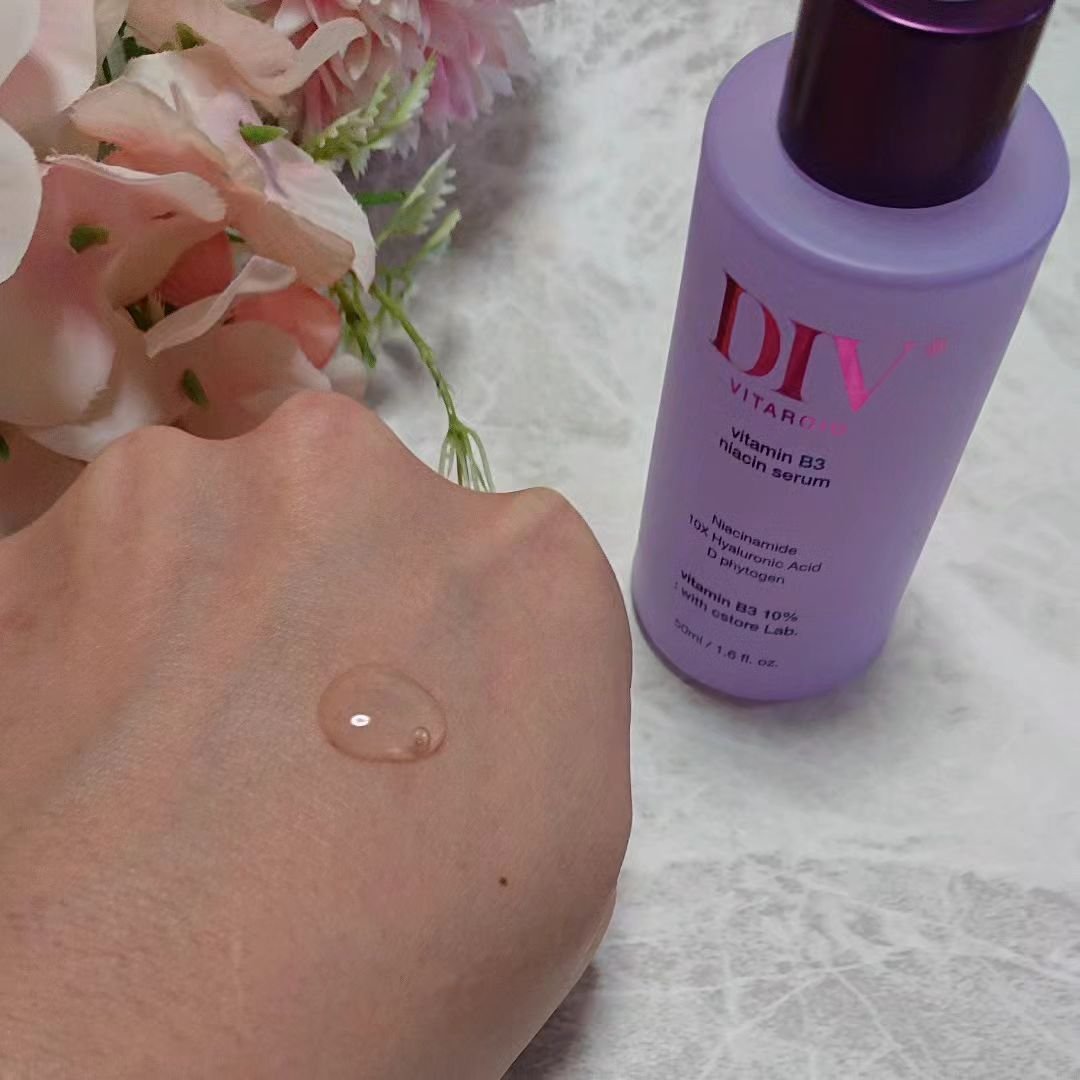 - ビタミンB3*10%&ナイアシンアミド*を高含有量でセラム1本にたっぷり入れました。肌の透明感ケアをサポートするDIV独自のスキンケアソリューションをお試しください *整肌成分