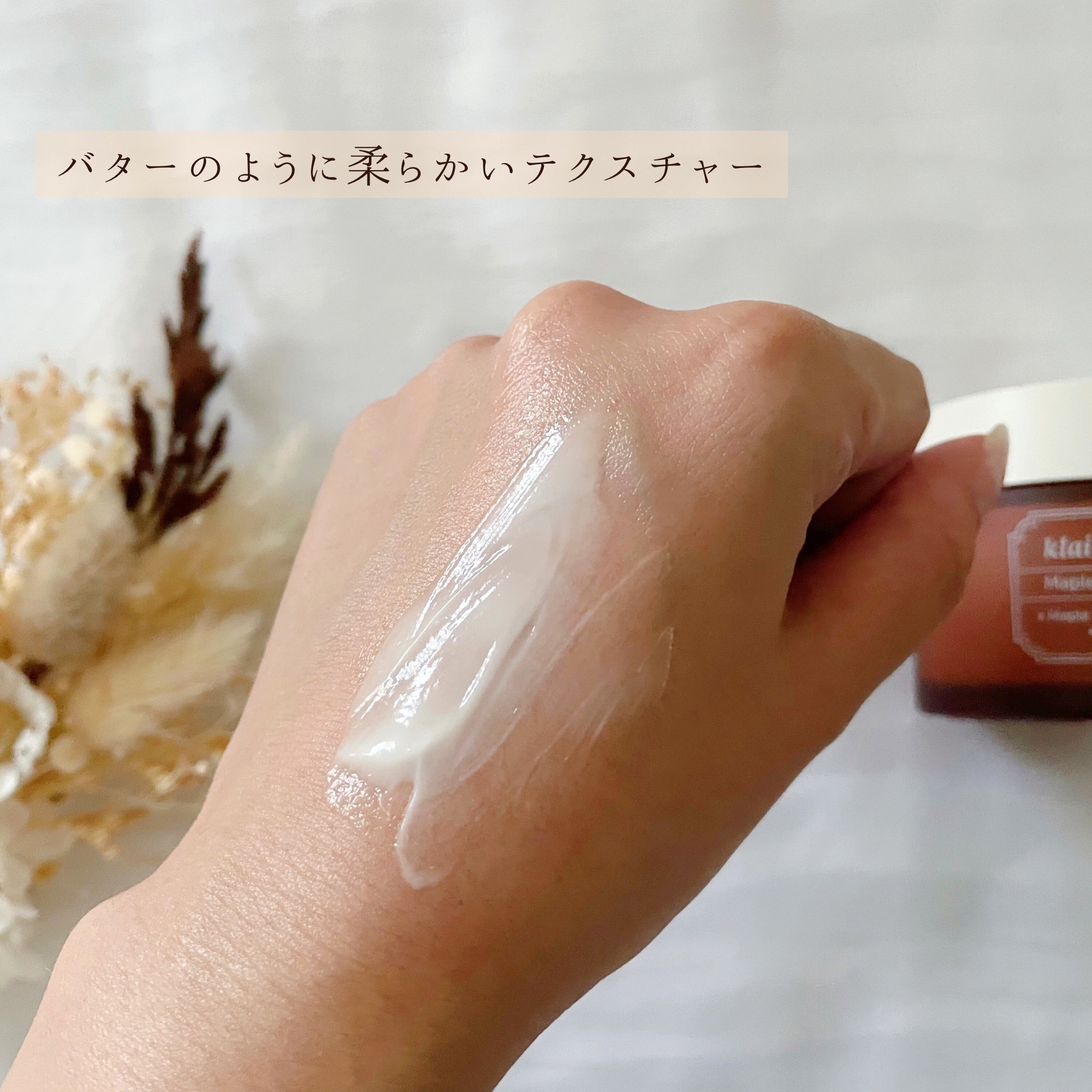 | バターのように柔らかくなめらかなテクスチャー。するする~っとなめらかに伸ばしやすく肌なじみが良いです🥰 | 詳細を見る |